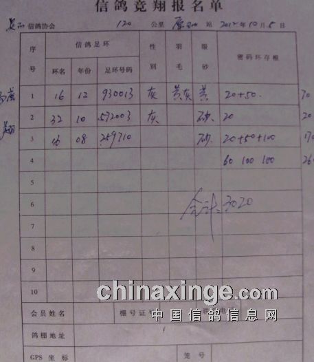 500公里大悟站前十名验鸽(汽车大奖赛冠军)(7-8)