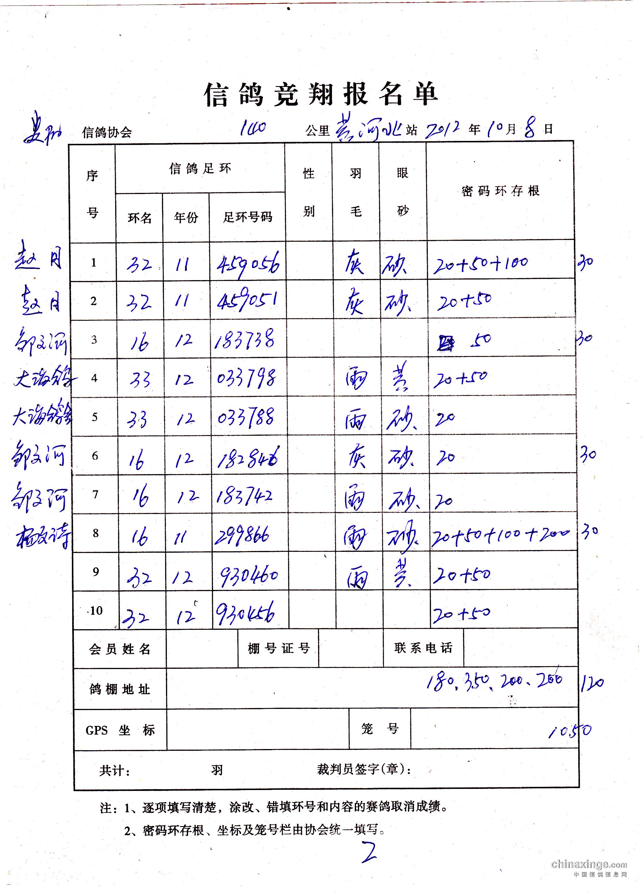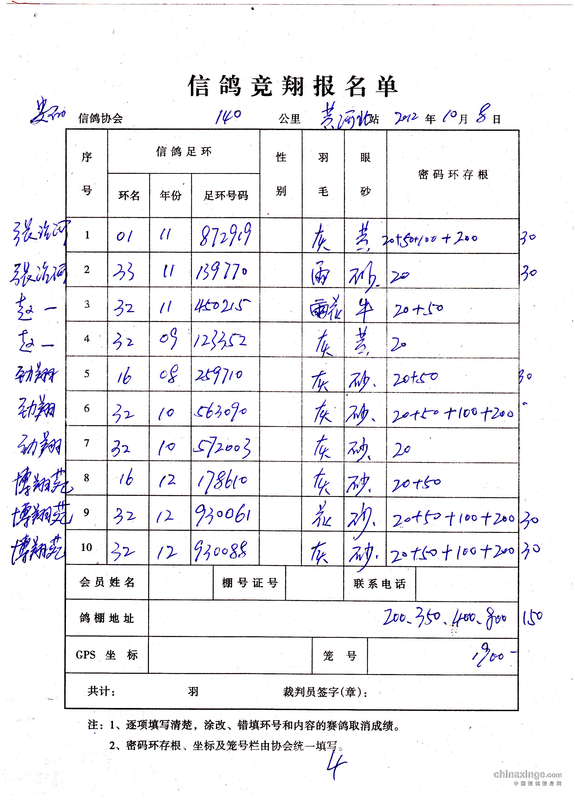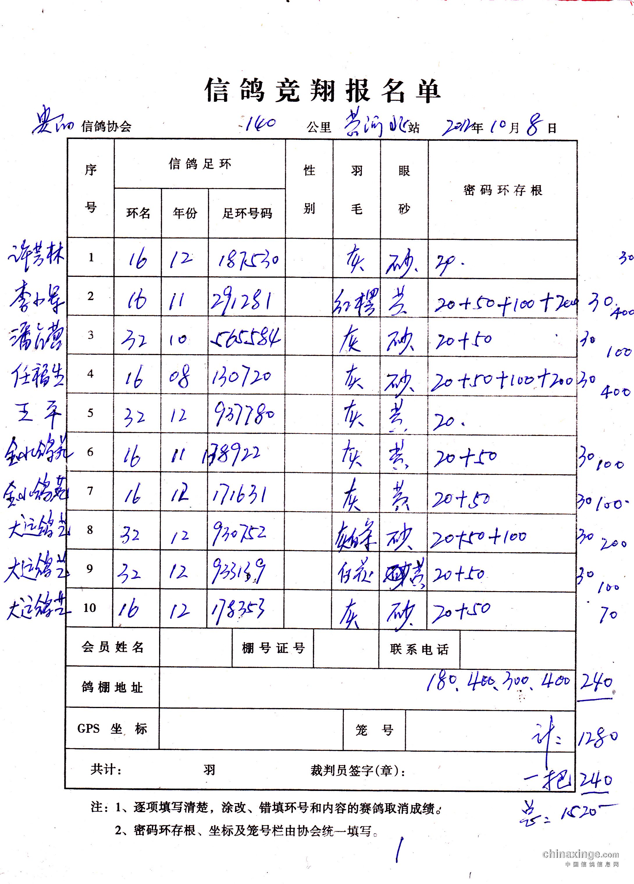 500公里大悟站前十名验鸽(汽车大奖赛冠军)(7-8)