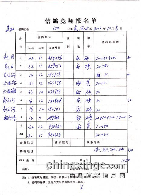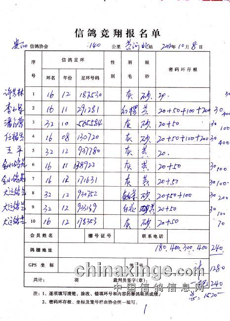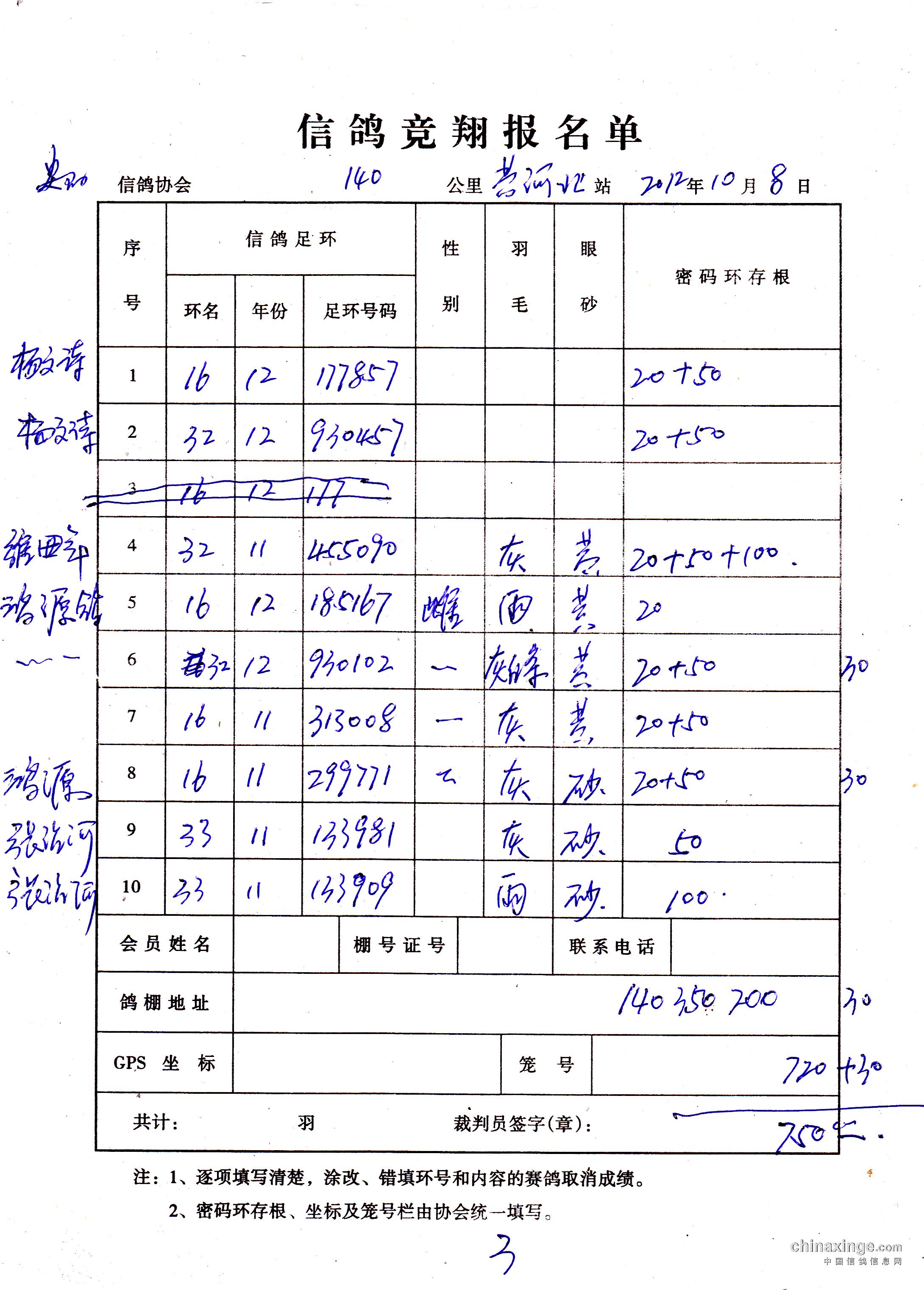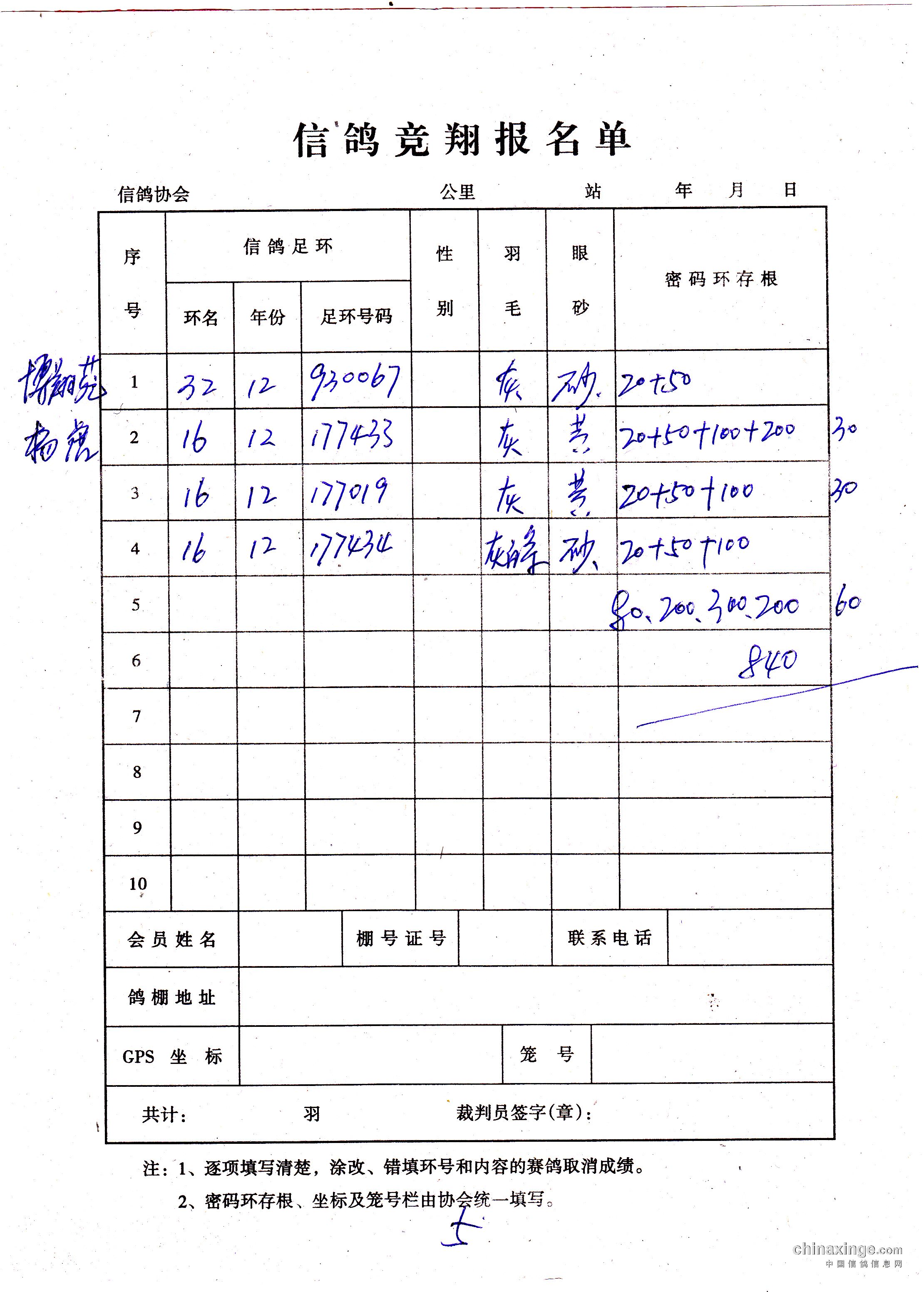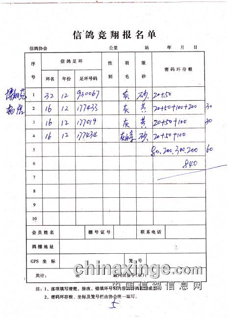 500公里大悟站前十名验鸽(汽车大奖赛冠军)(7-8)