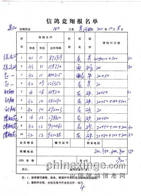 2021秋安阳市信鸽协会500公里大悟站成绩明细(临时)1-100