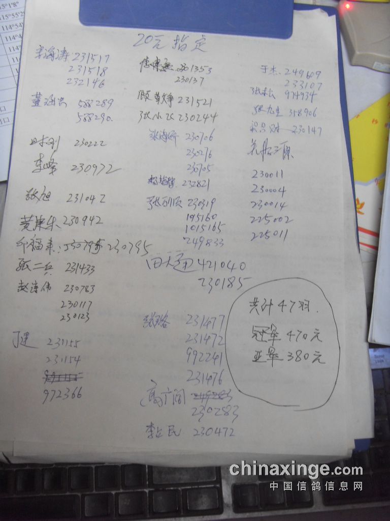 霸州市信鸽协会2025年春季500公里级国家赛成绩