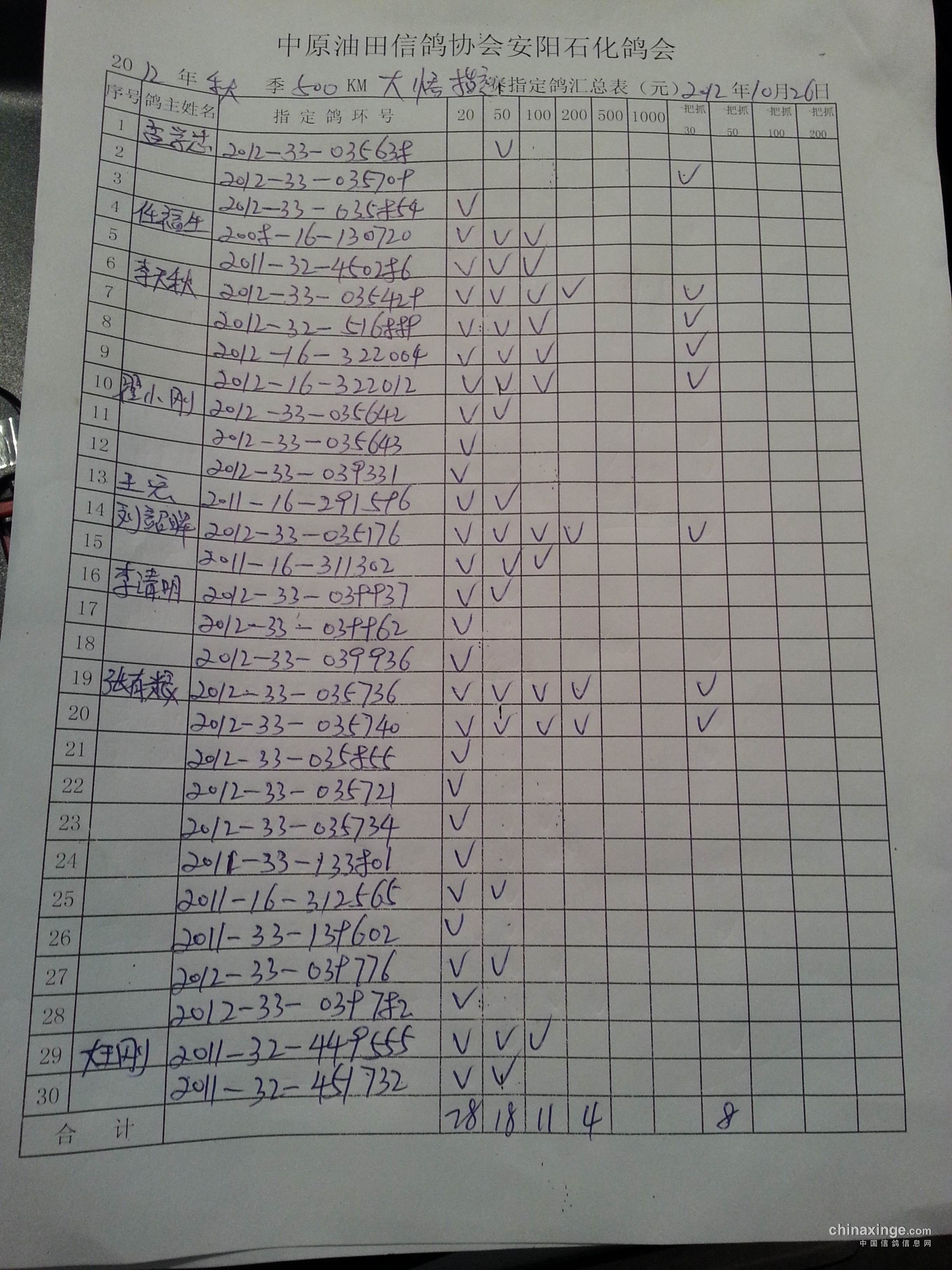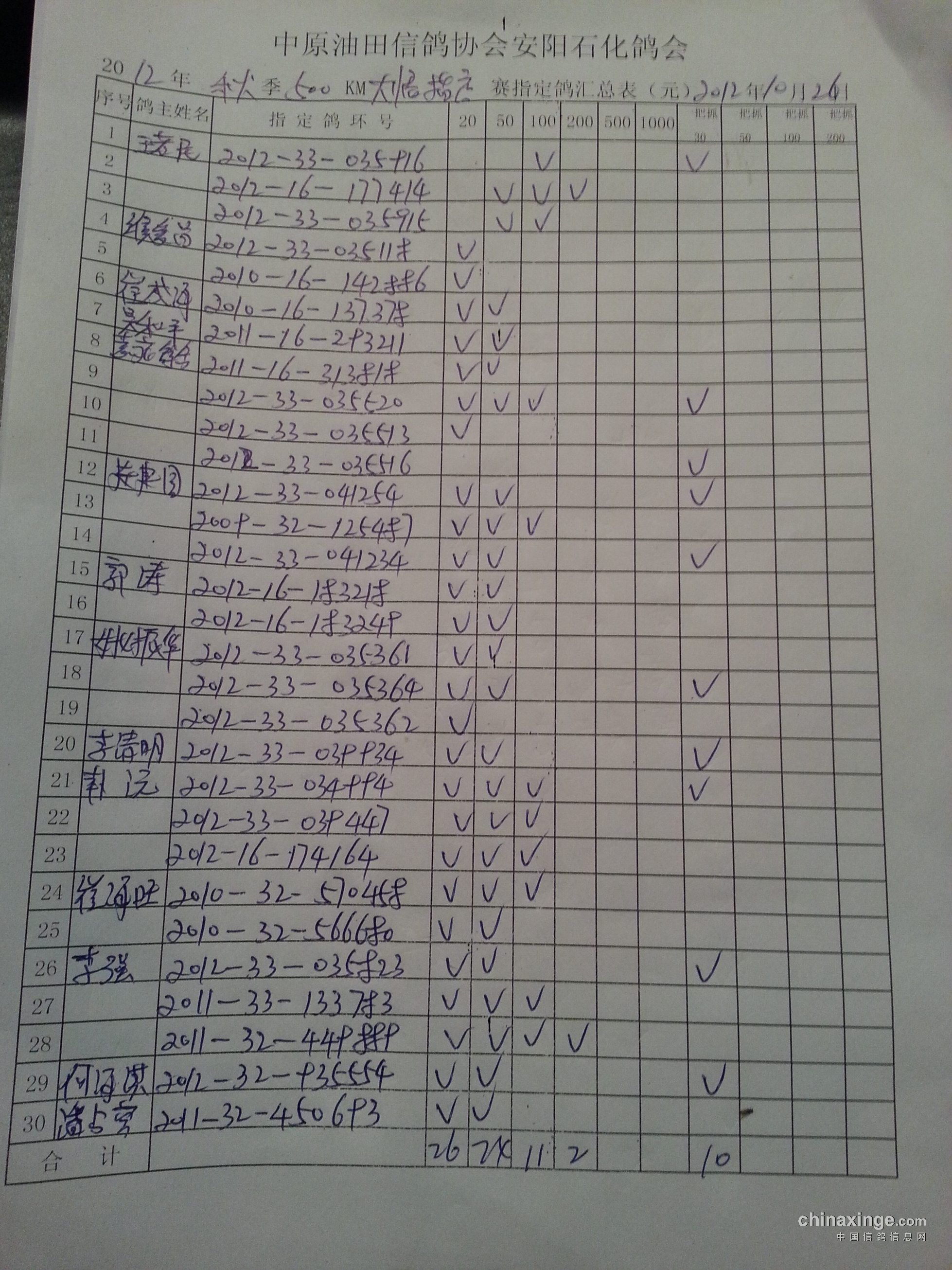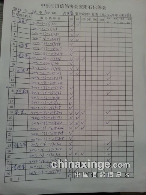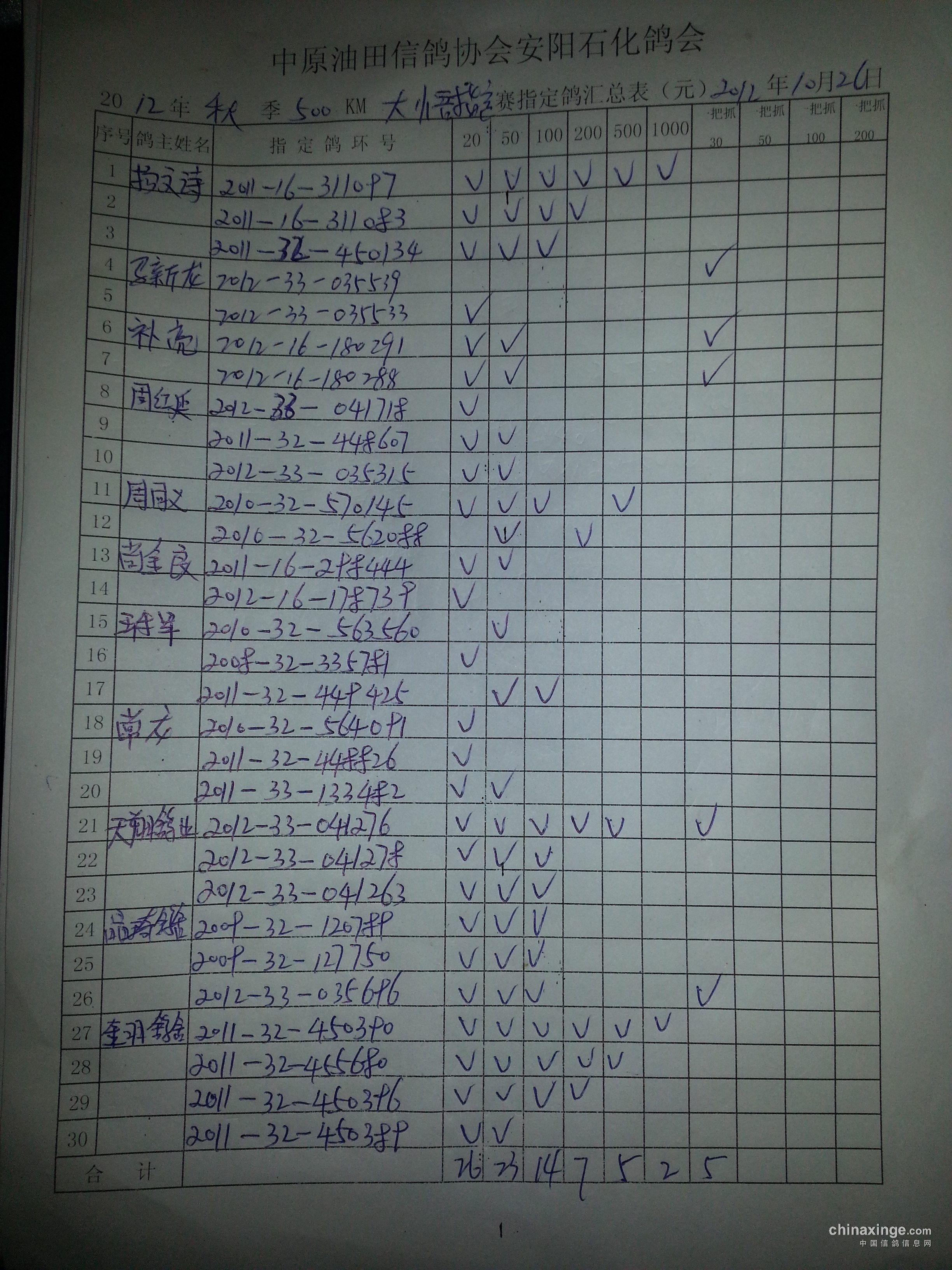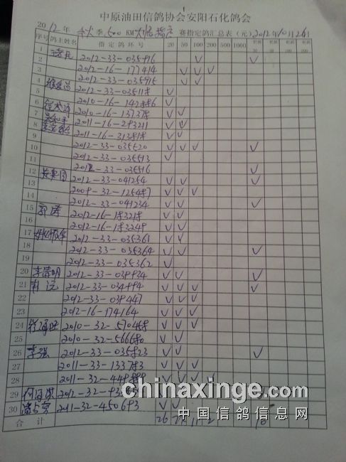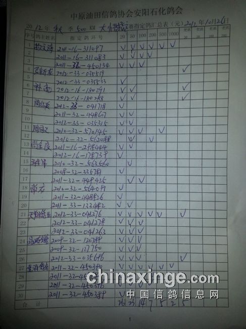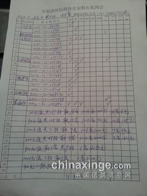 2021年秋500公里大悟大奖赛第二关成、幼鸽指定成绩