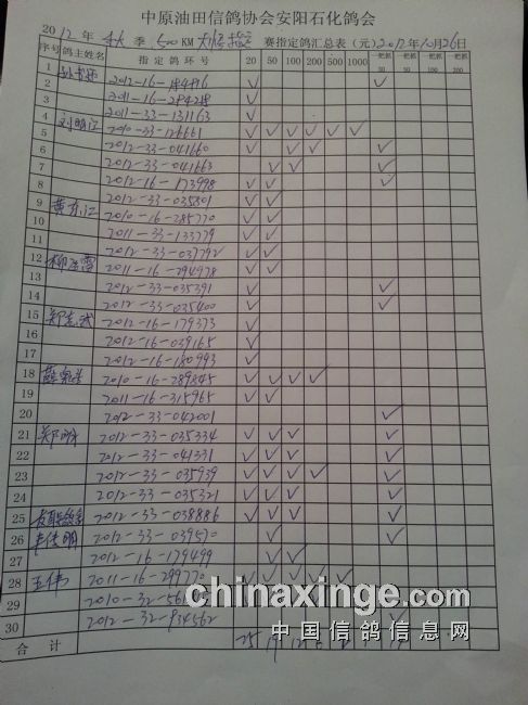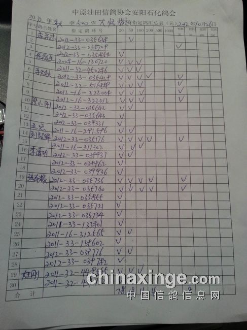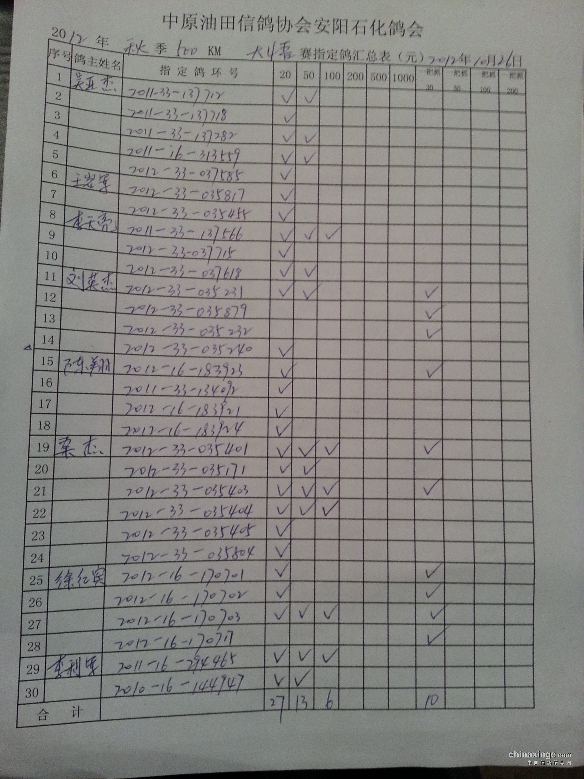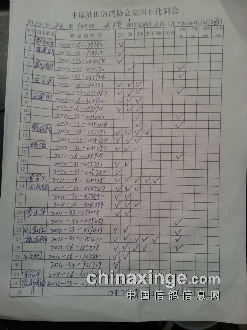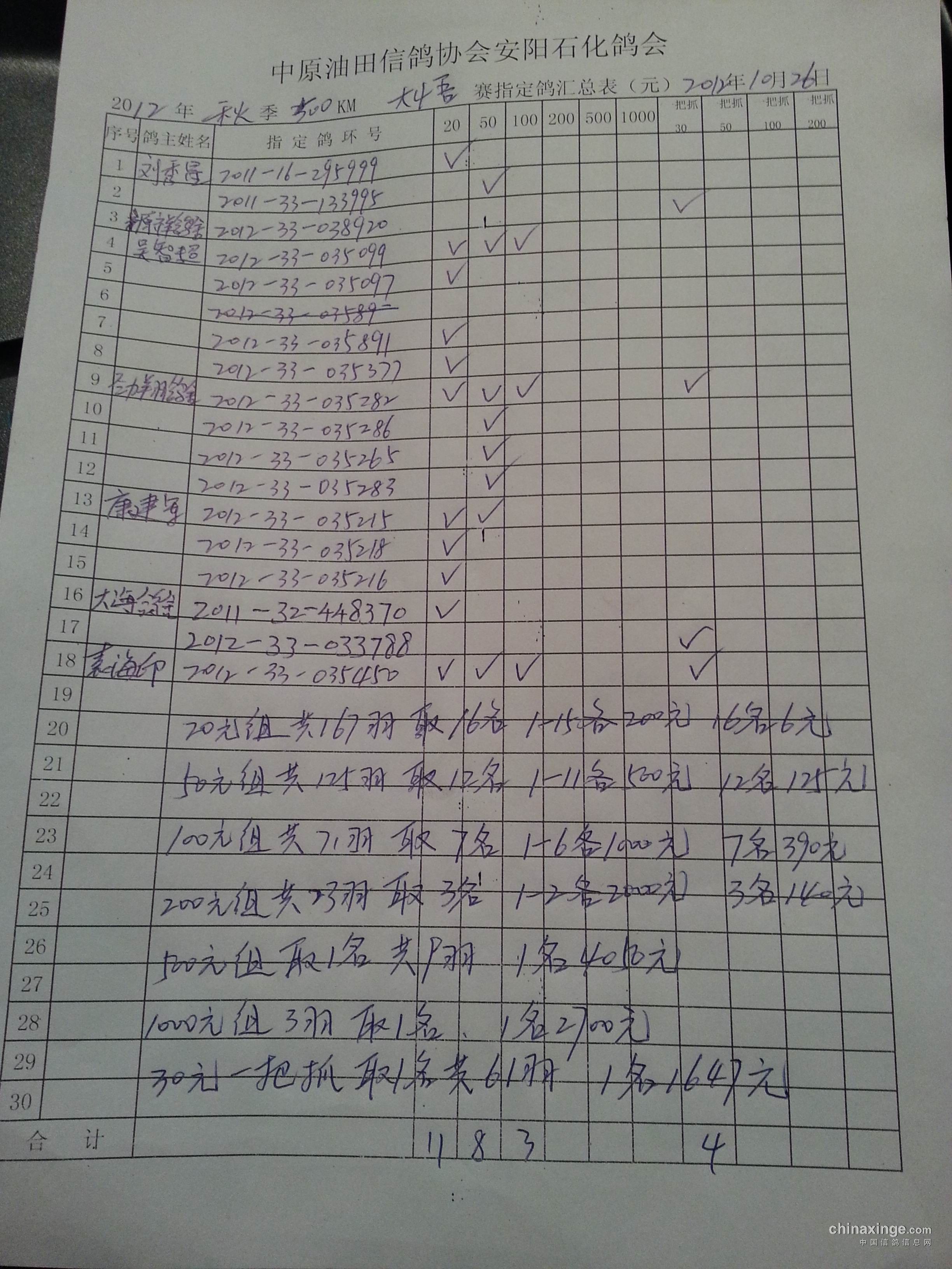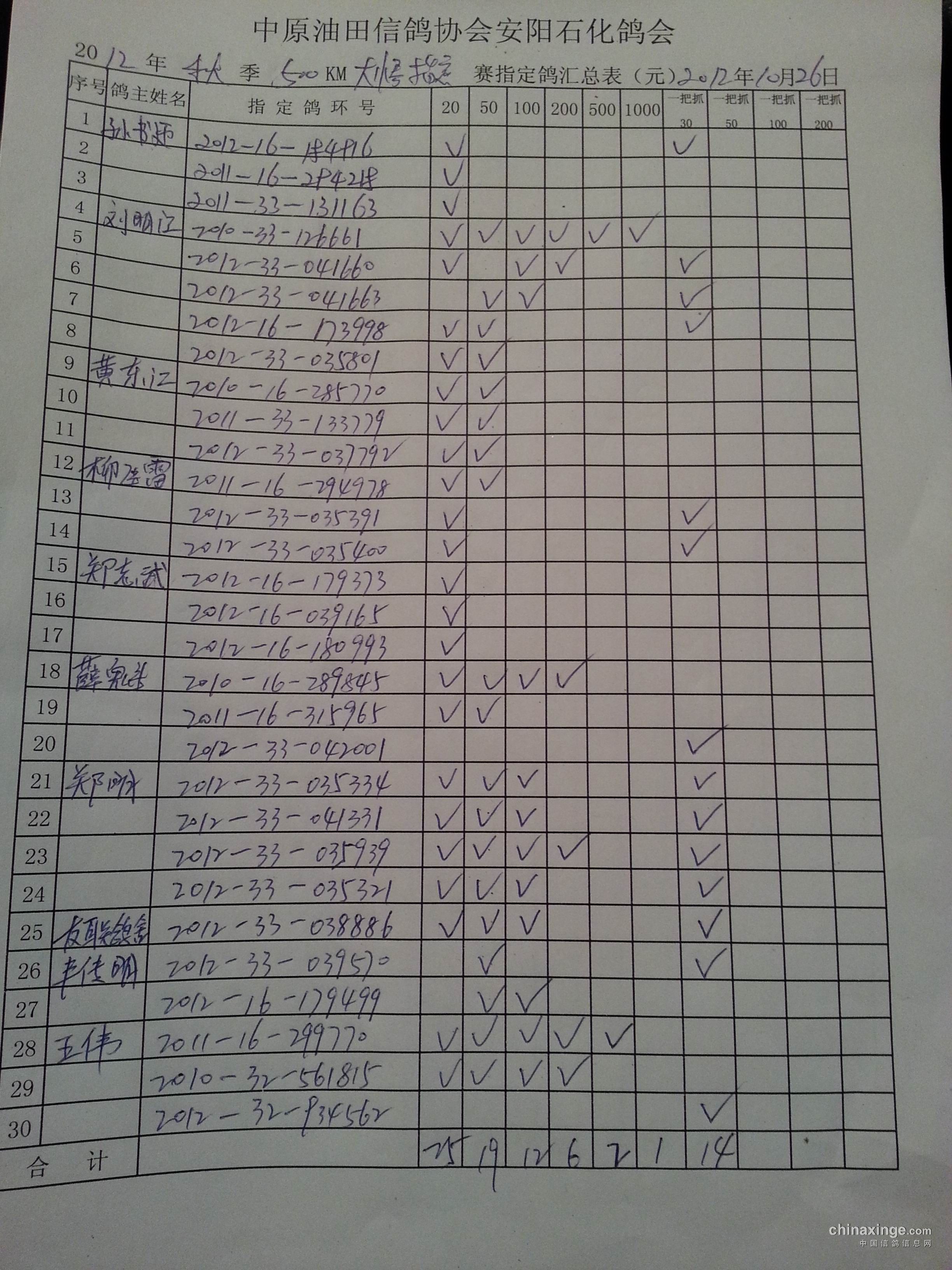 2021年秋500公里大悟大奖赛第二关成、幼鸽指定成绩