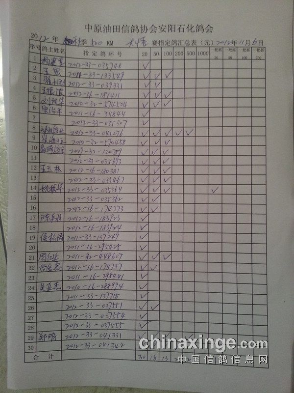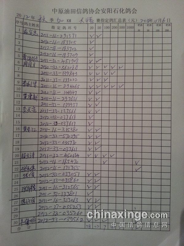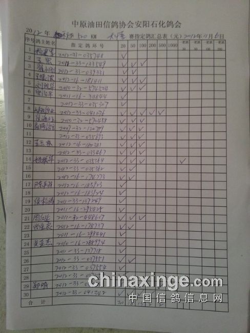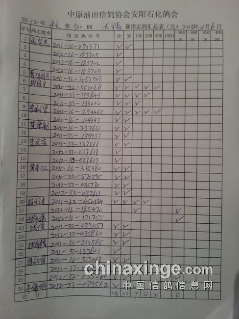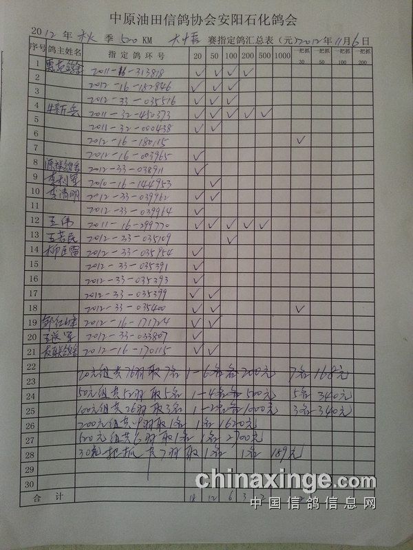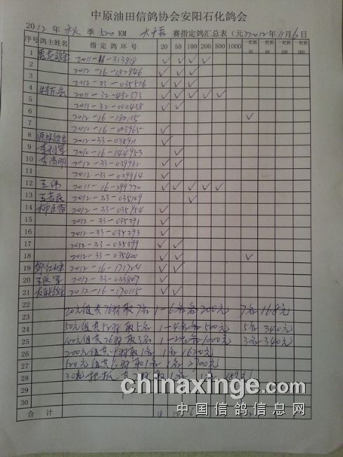 2021年秋500公里大悟大奖赛第二关成、幼鸽指定成绩
