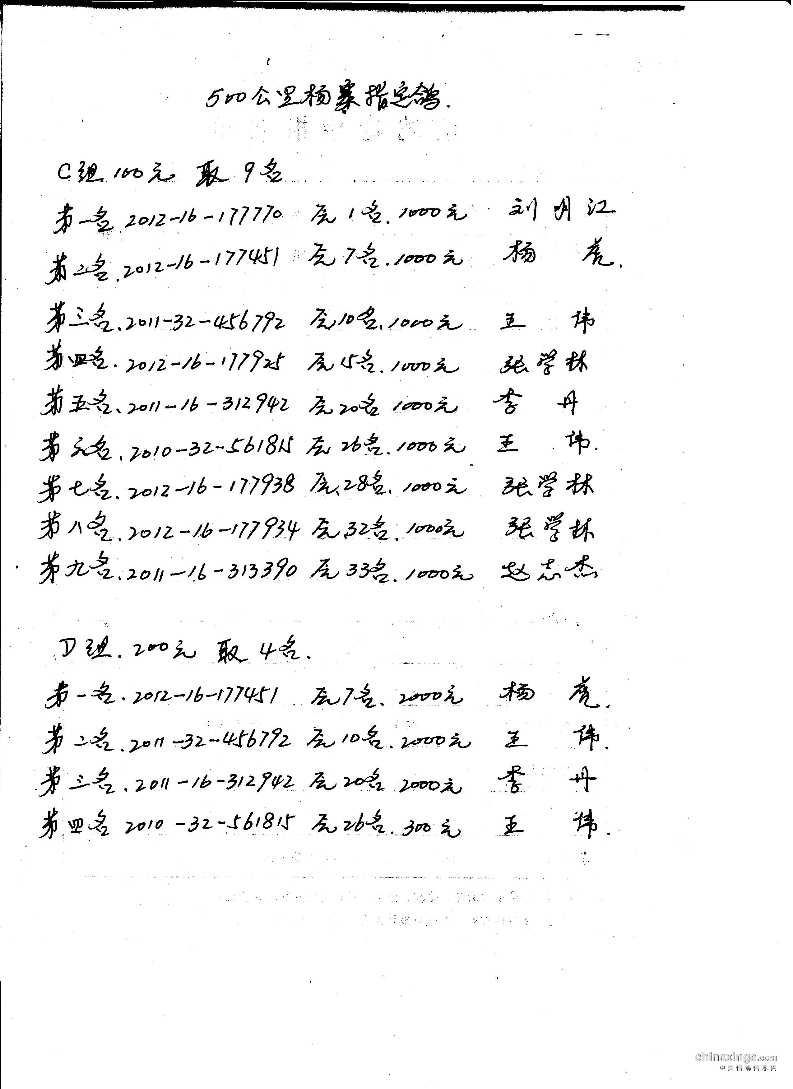 500公里大悟站前十名验鸽(汽车大奖赛冠军)(7-8)
