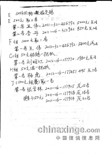 备注:以上为指定鸽录取成绩,如有异议请24小时内与协会联系。如无异议24小时此成绩生效。联系电话:15537237553