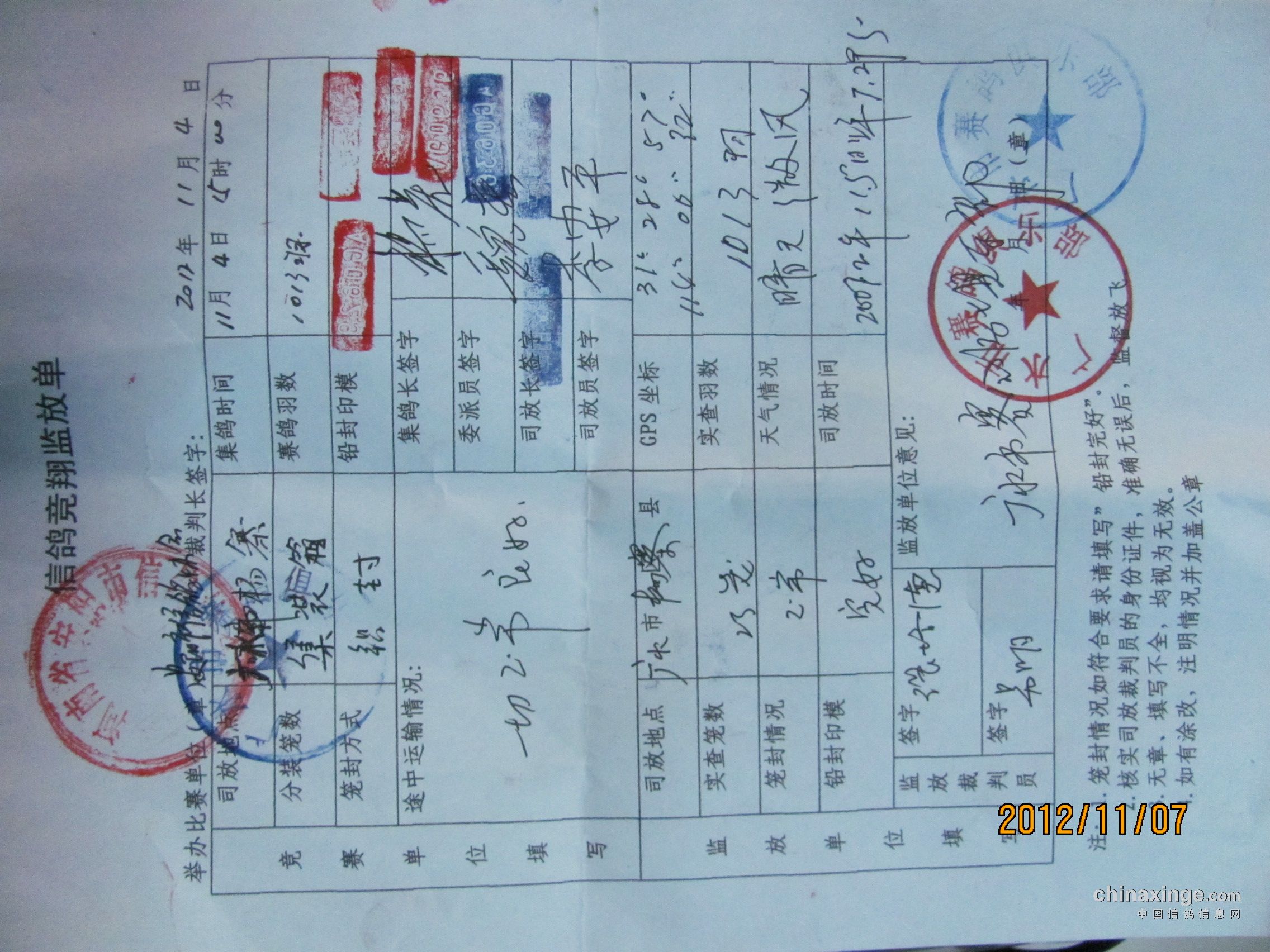 广水信鸽协会监放
