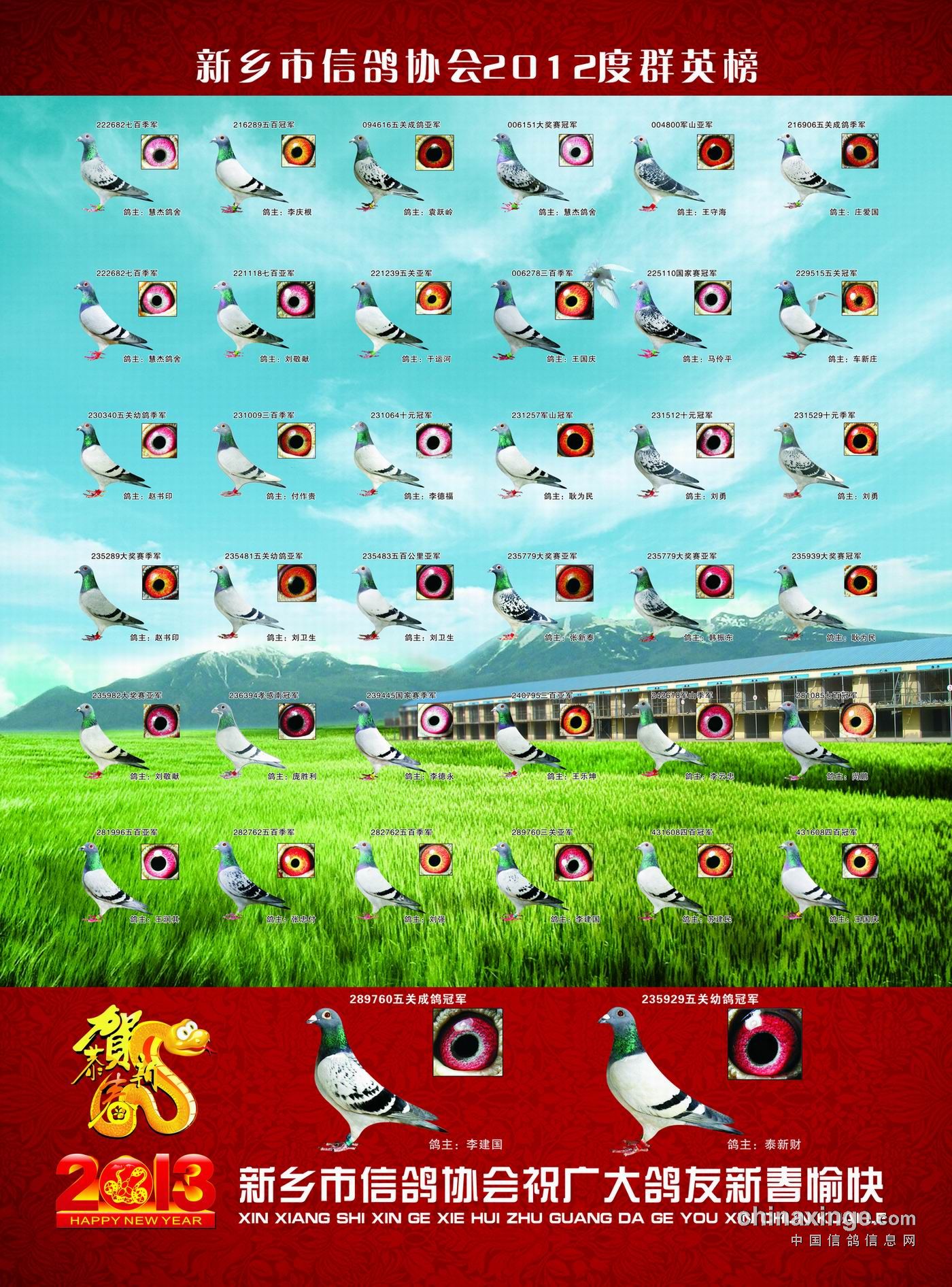 新乡市第二十五届武汉国家赛即春季大奖赛第二关集鸽清单