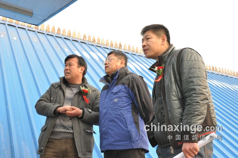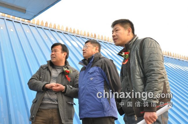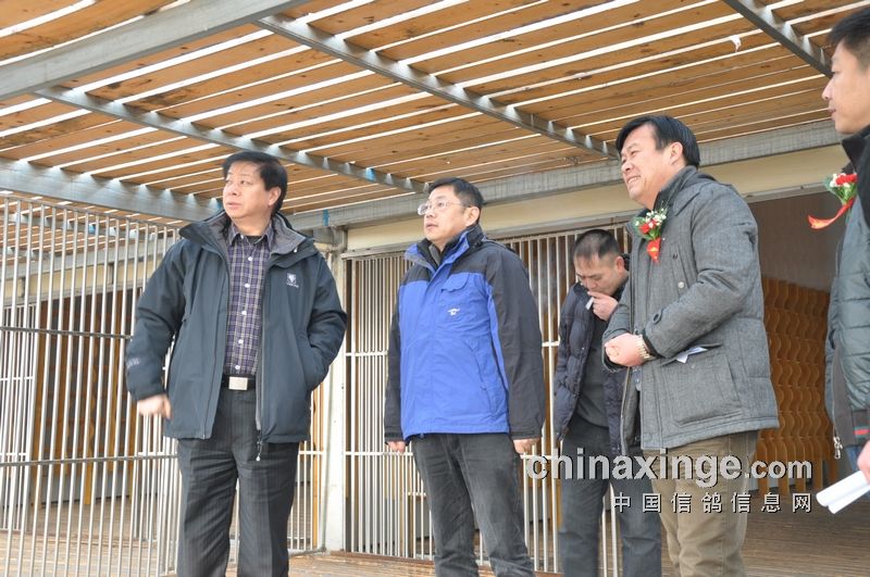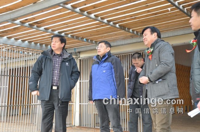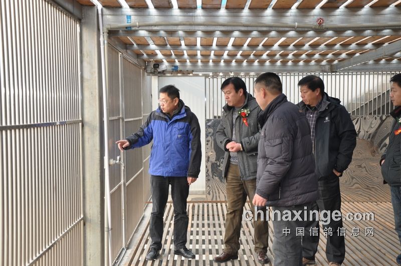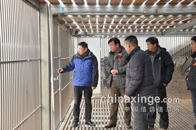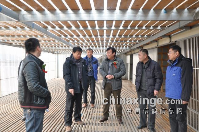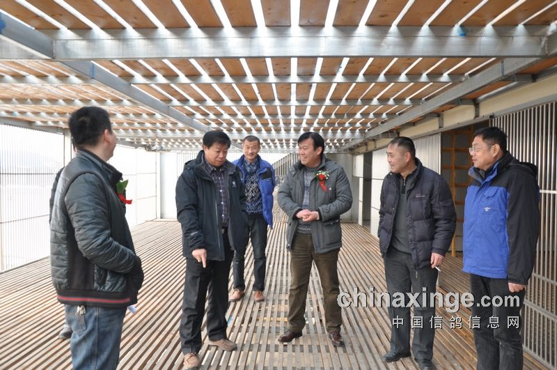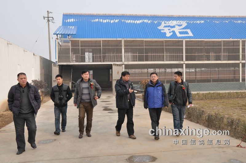 许昌市信鸽协会会长姚志刚与铭泰公棚刘总陪同领导参观公棚设施