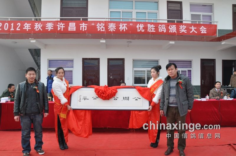许昌市信鸽协会赠予铭泰公棚 《公开、公正、公平》