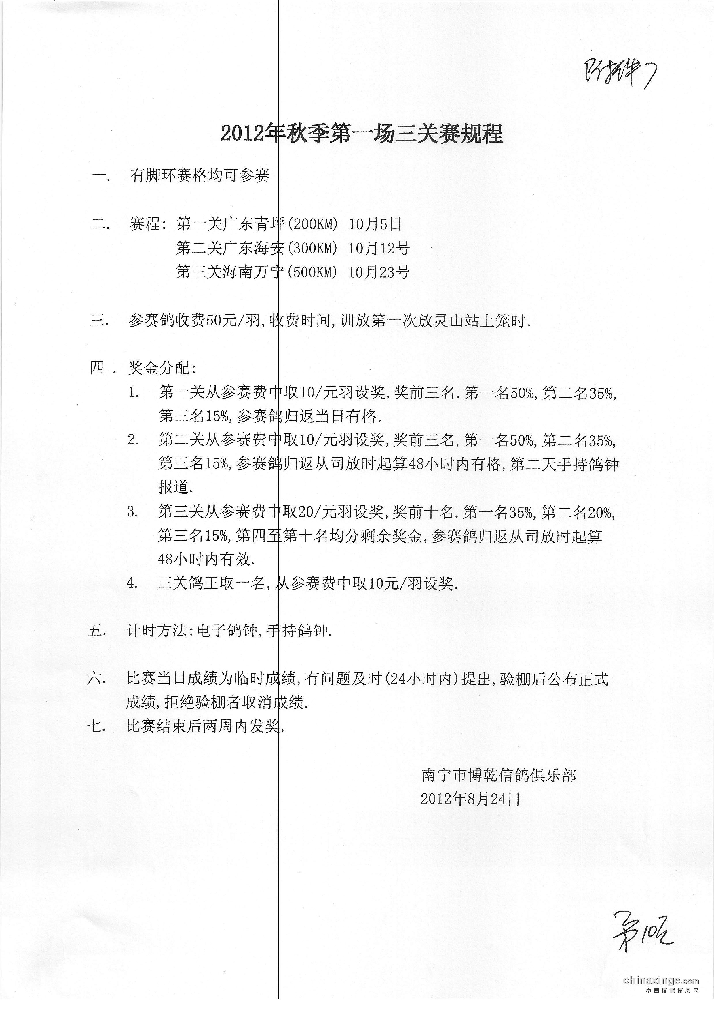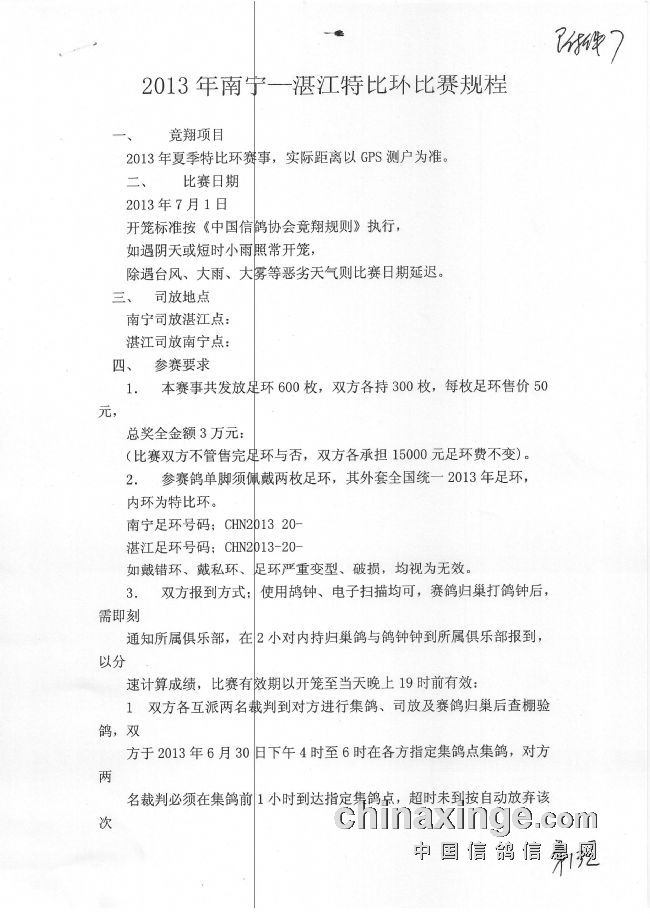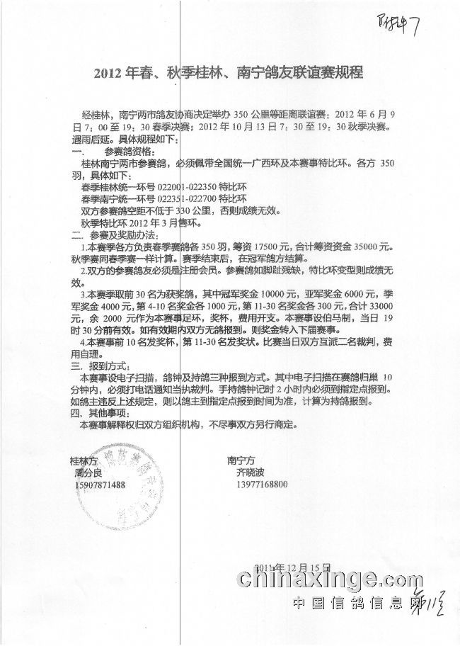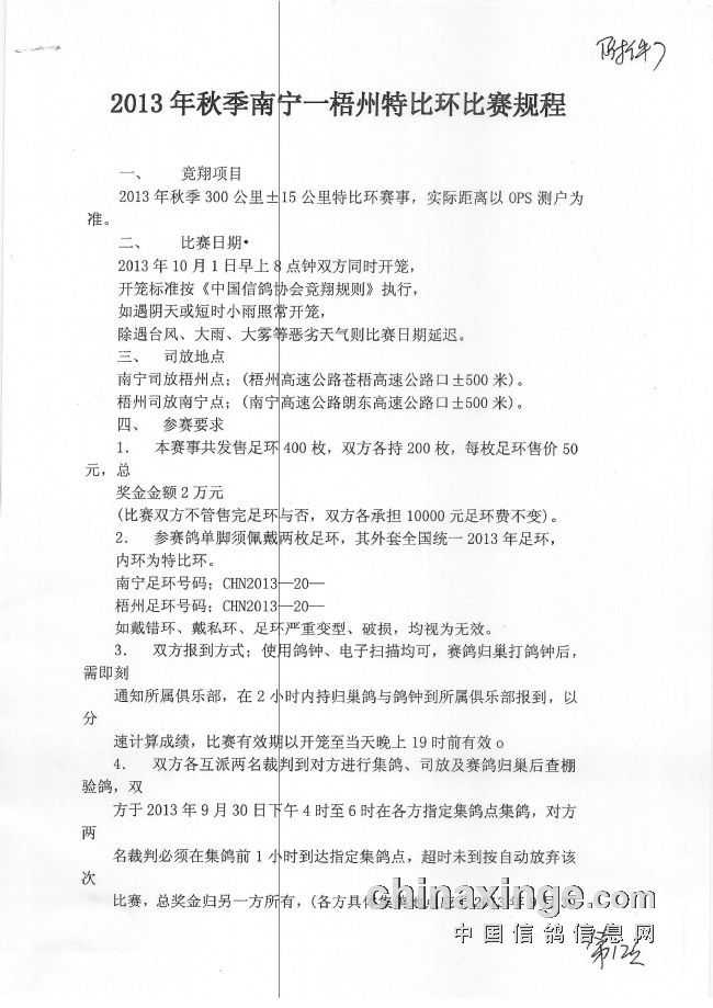 2017年南宁市鸽会秋季双关赛规程