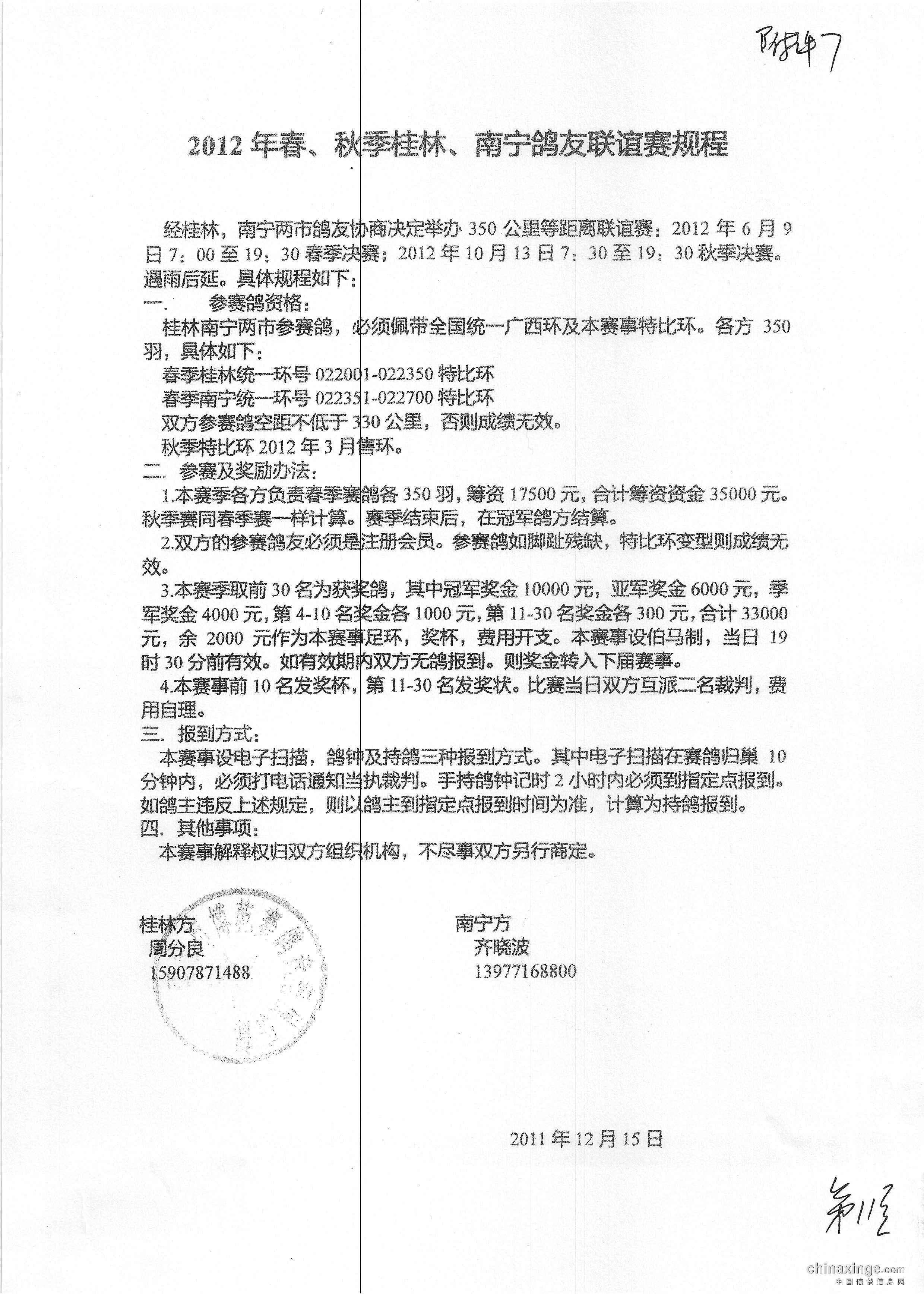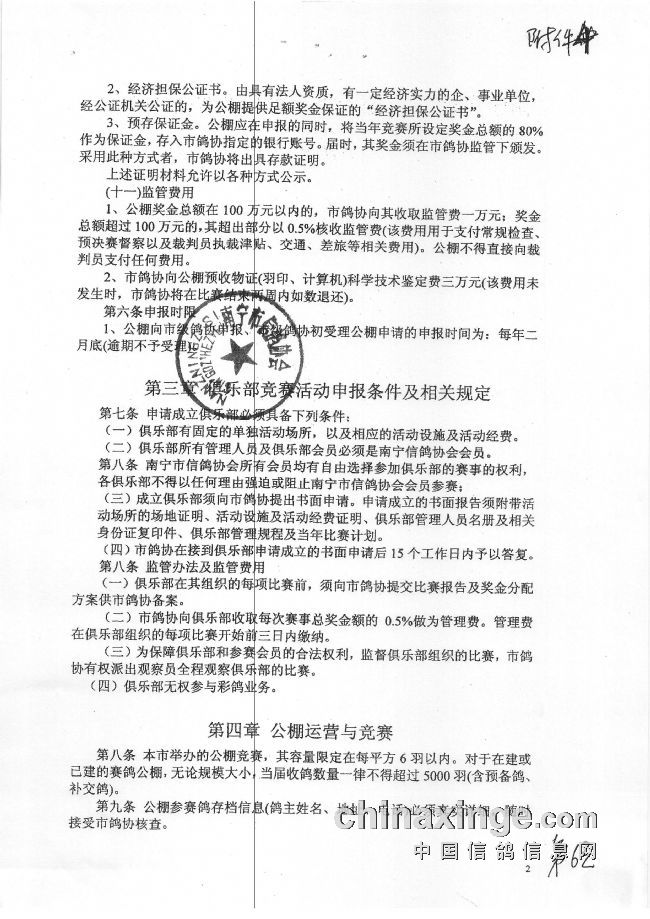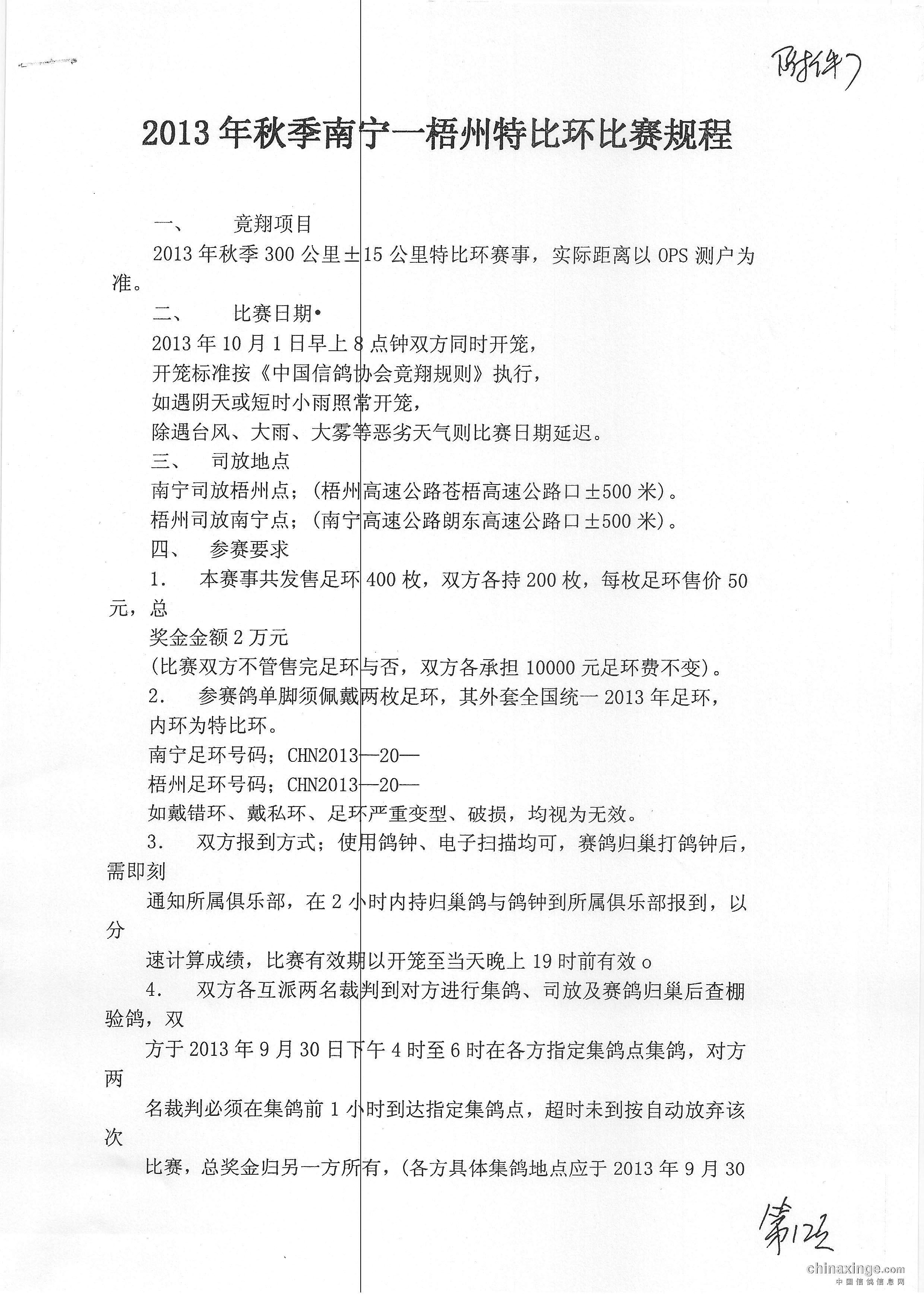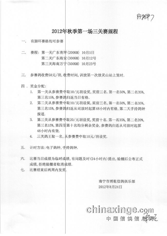 2017年南宁市鸽会秋季双关赛规程