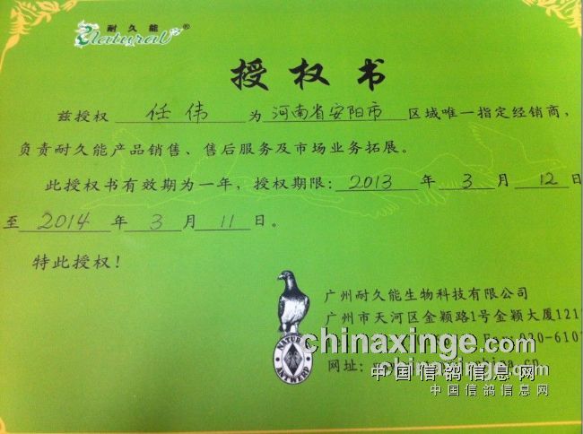 任伟先生龙园鸽药、耐久能鸽药总代理