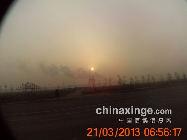 300公里新郑站于21日早7点10分在新郑开笼,司放地:晴无风,有轻雾,鸽群走势良好