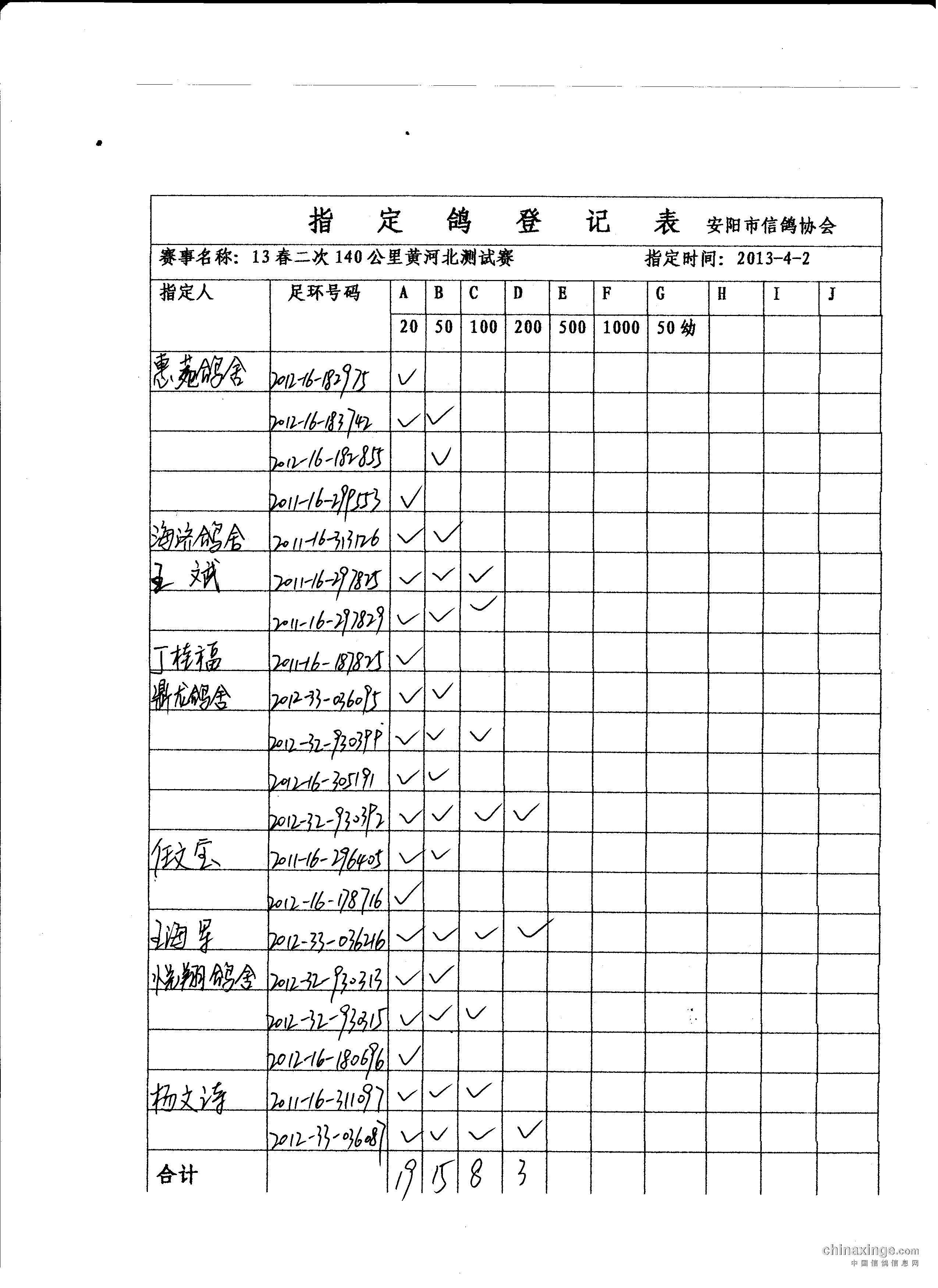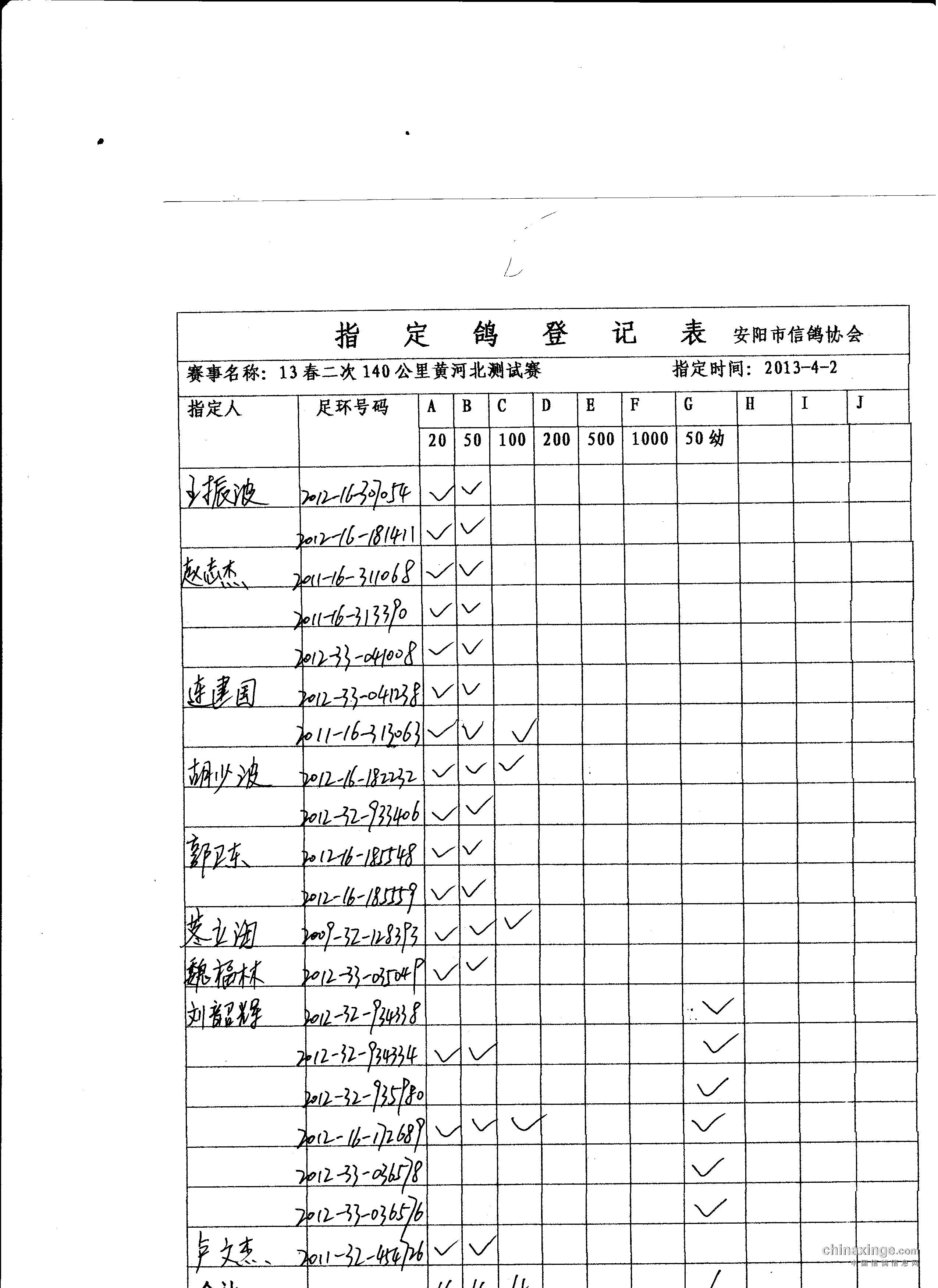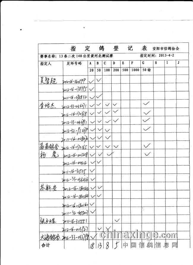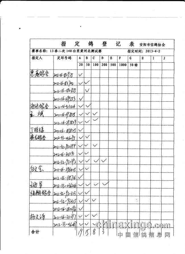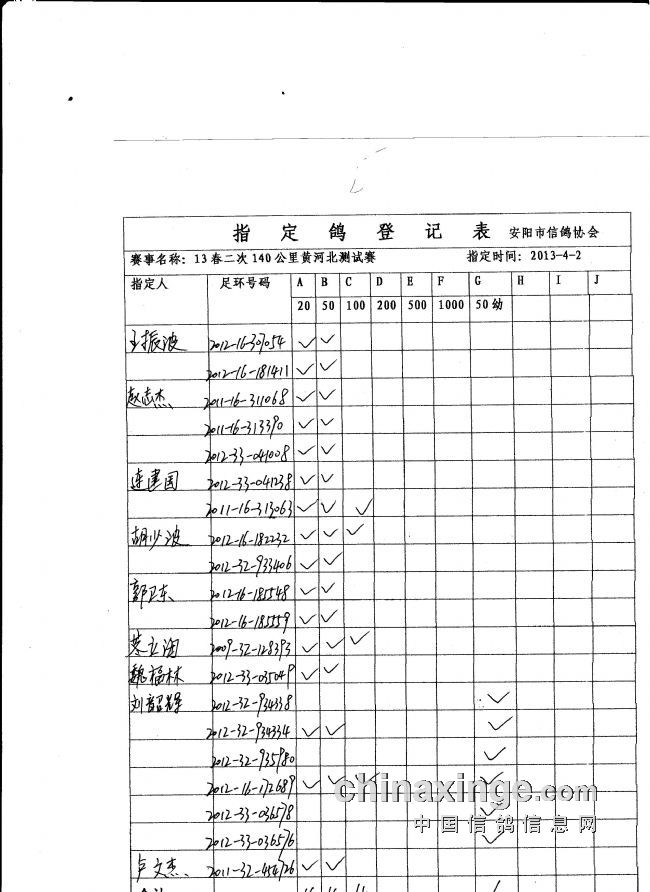 13春第二场140公里指定鸽名单