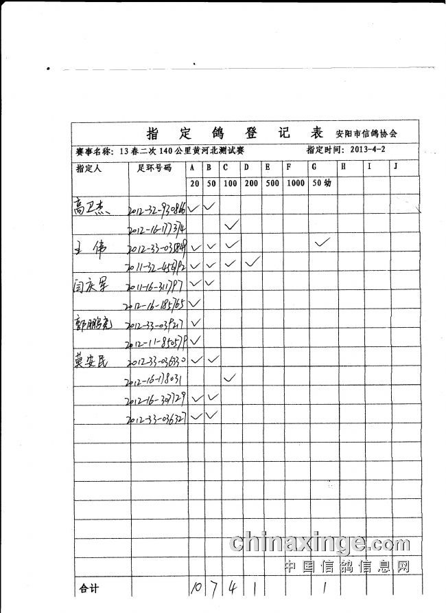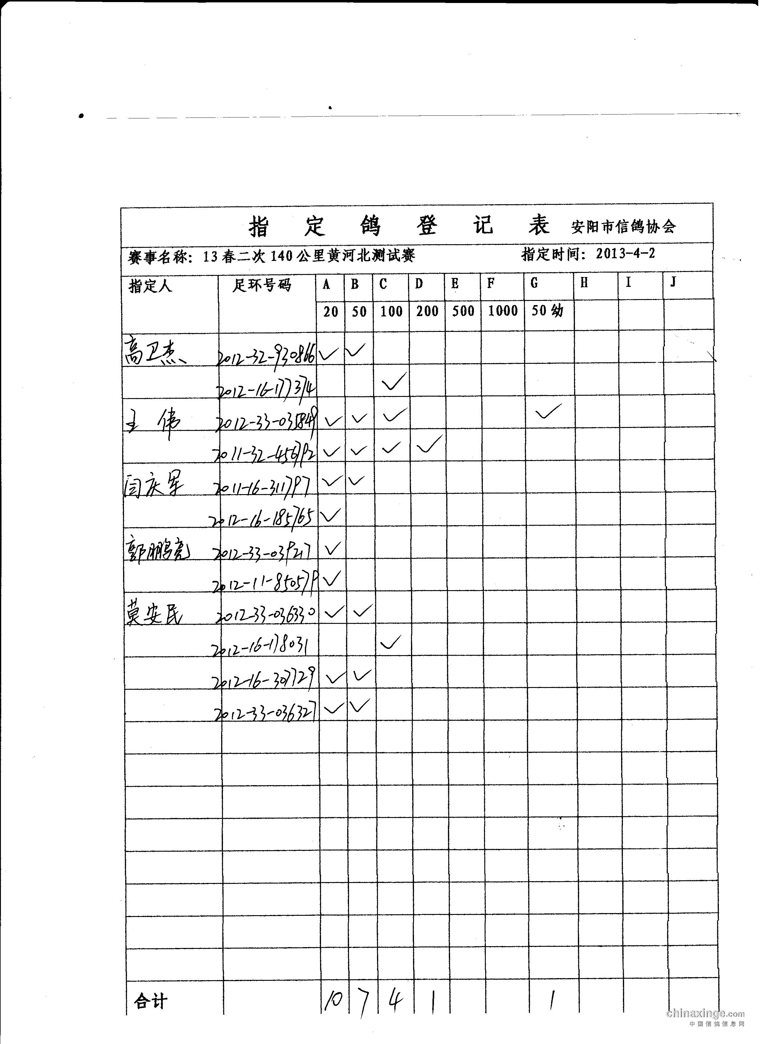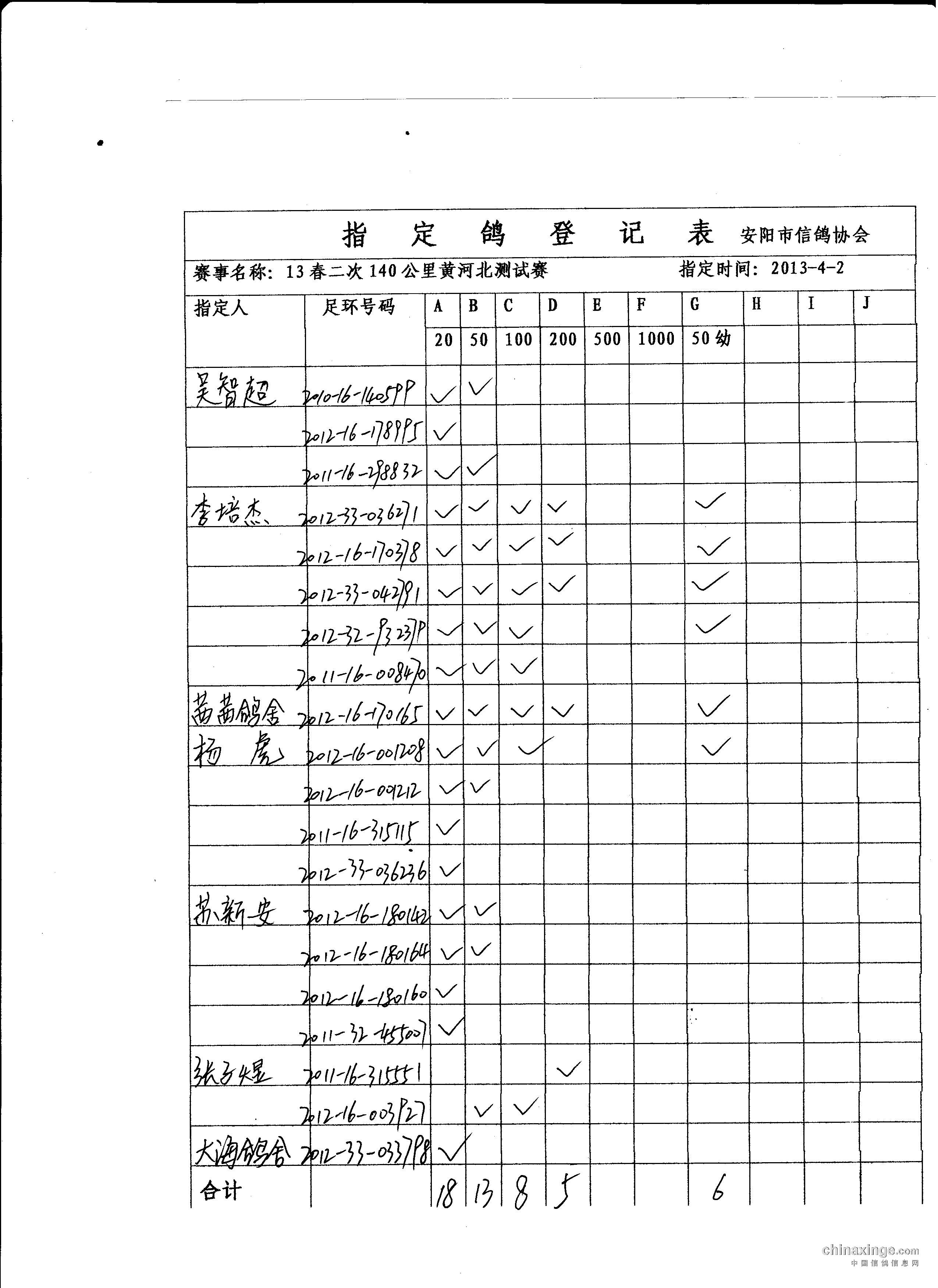 13春第二场140公里指定鸽名单