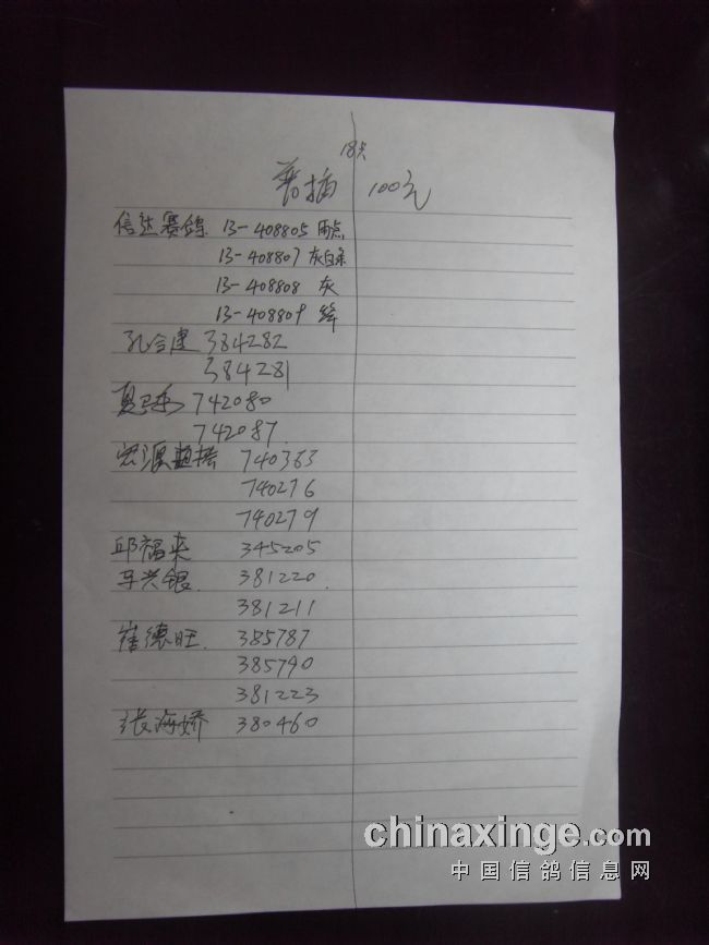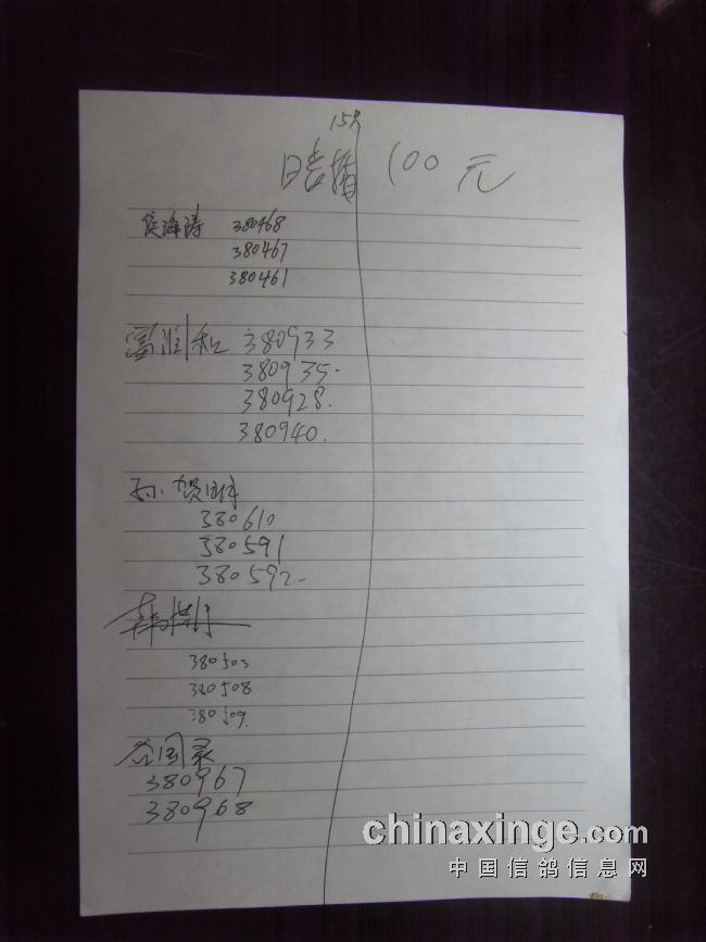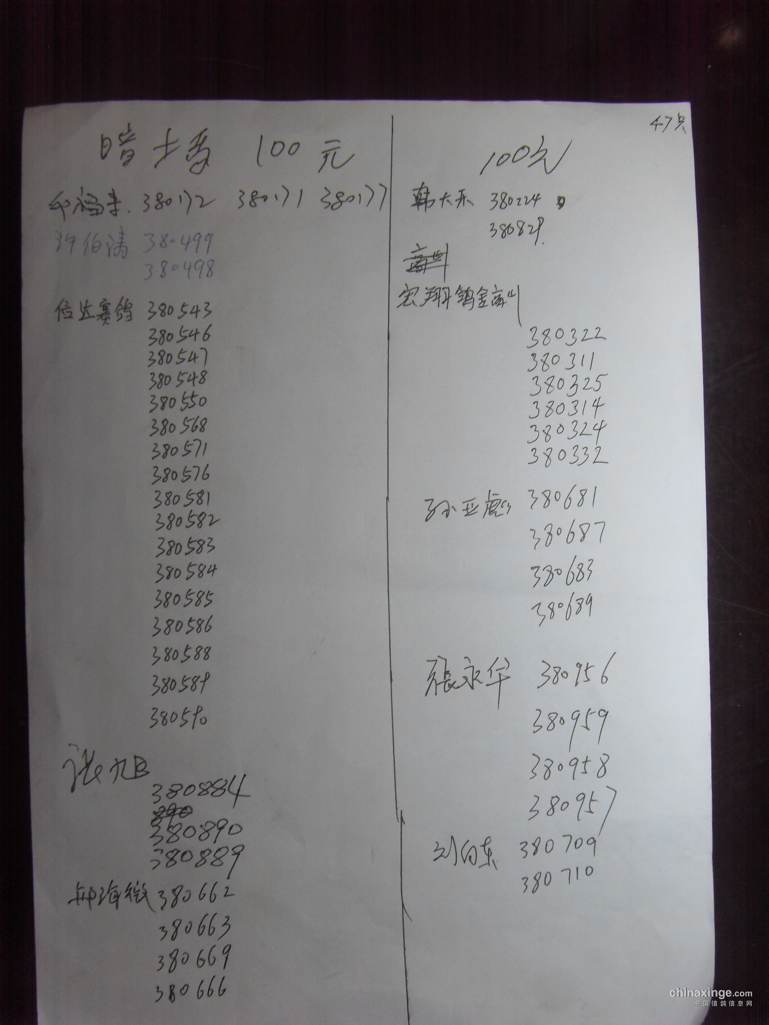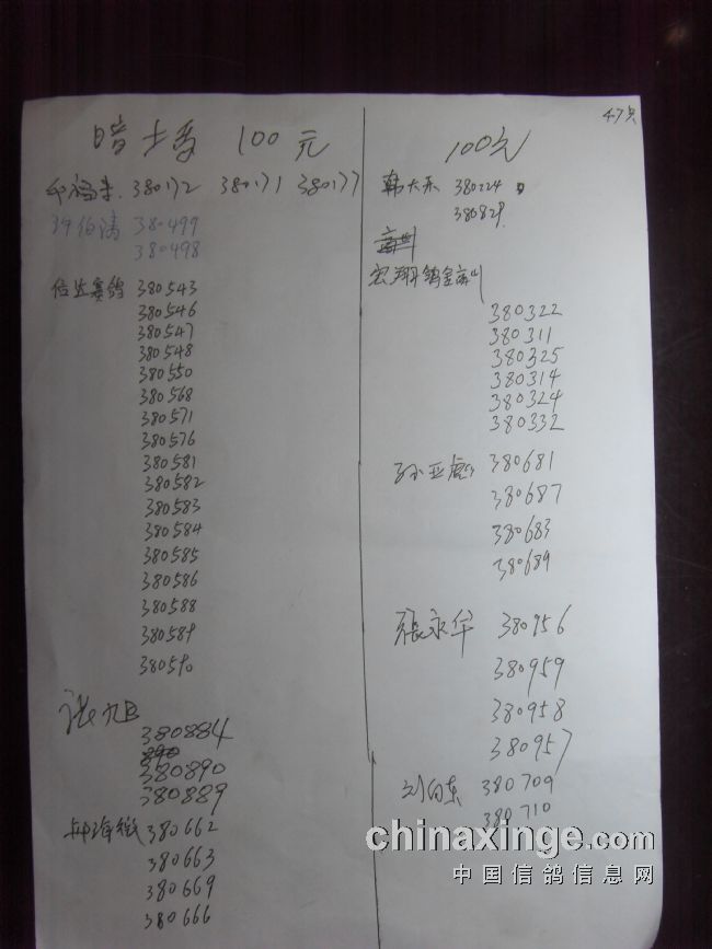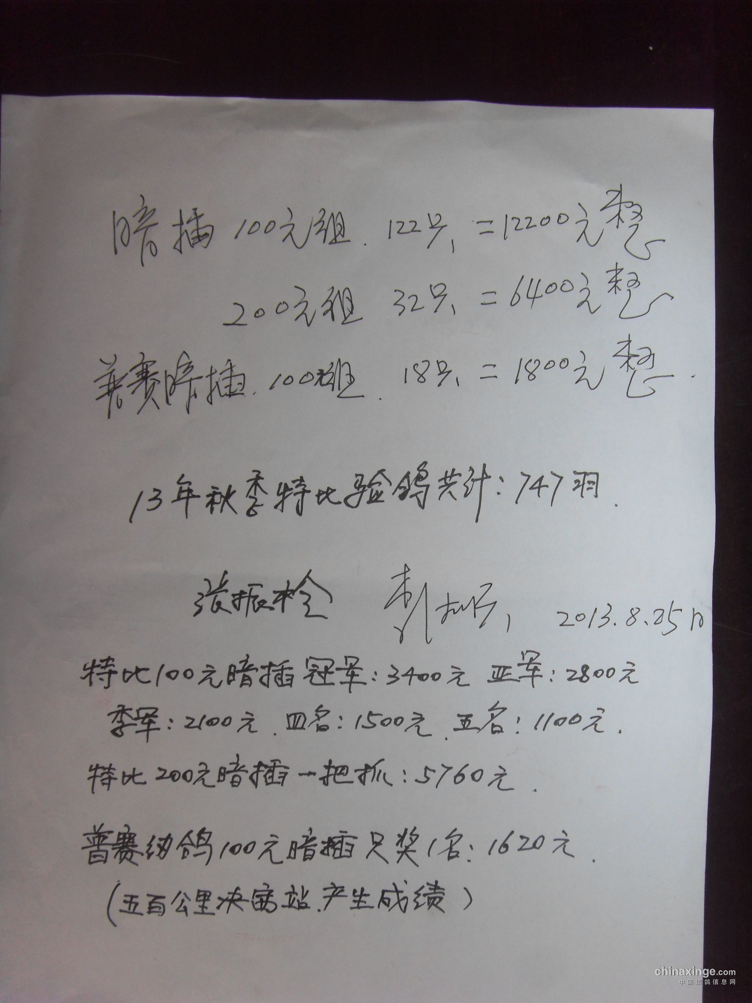 此次验鸽.最后合计。所有暗插鸽奖金原始照片