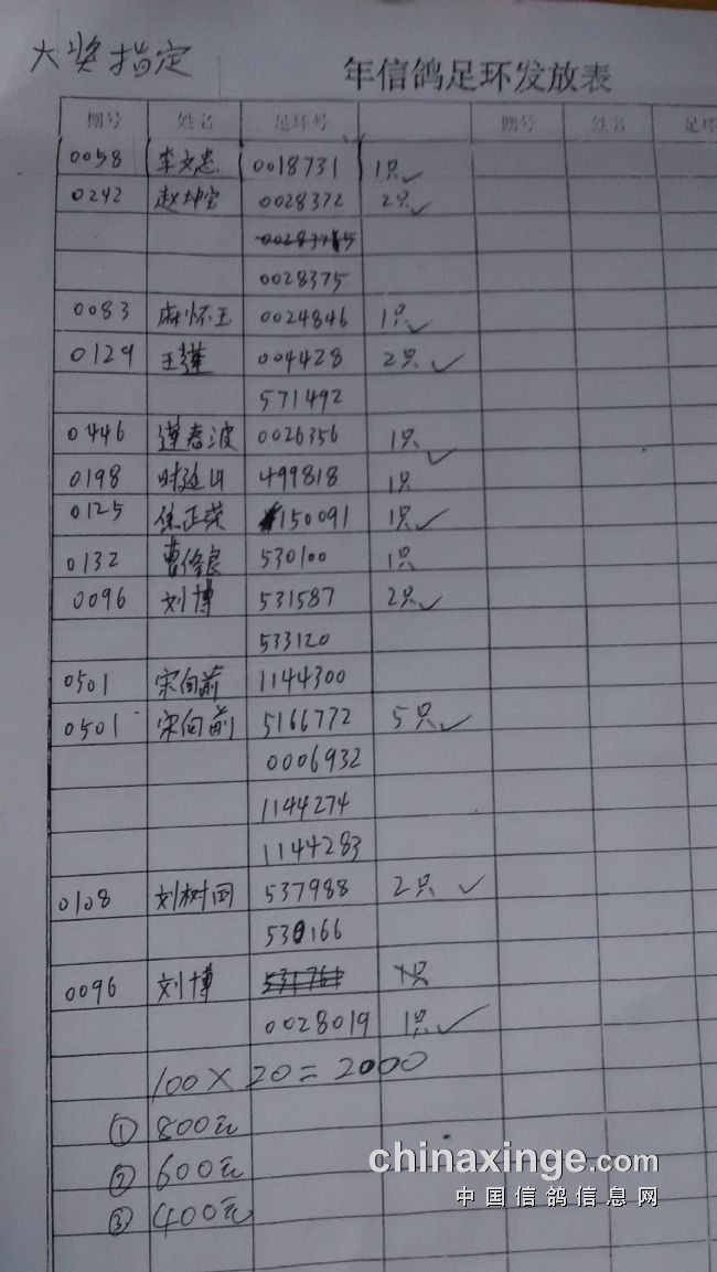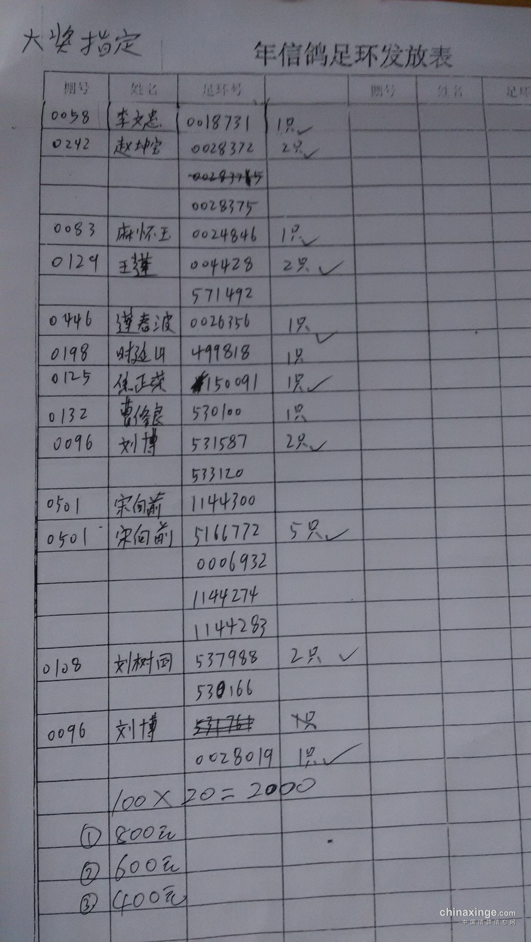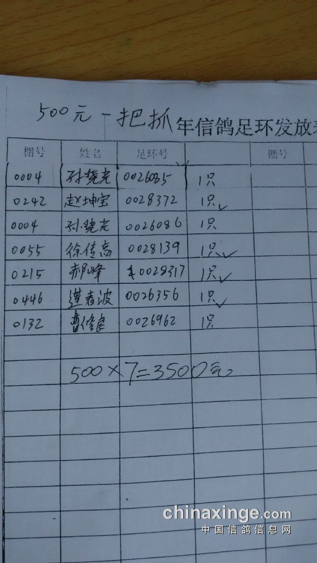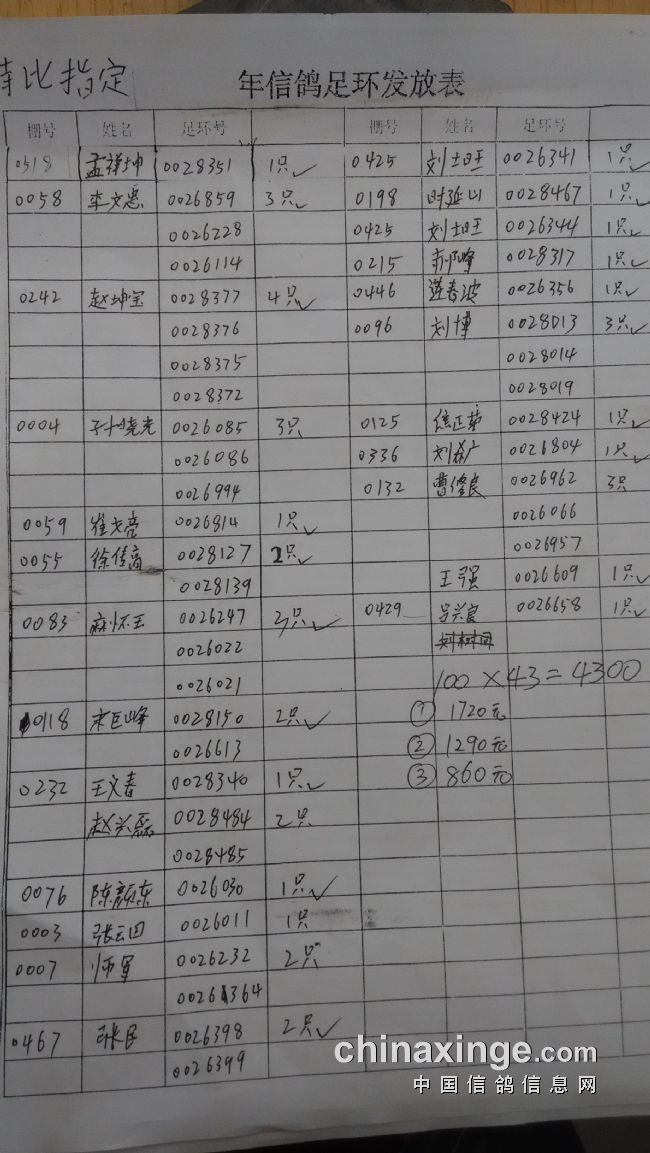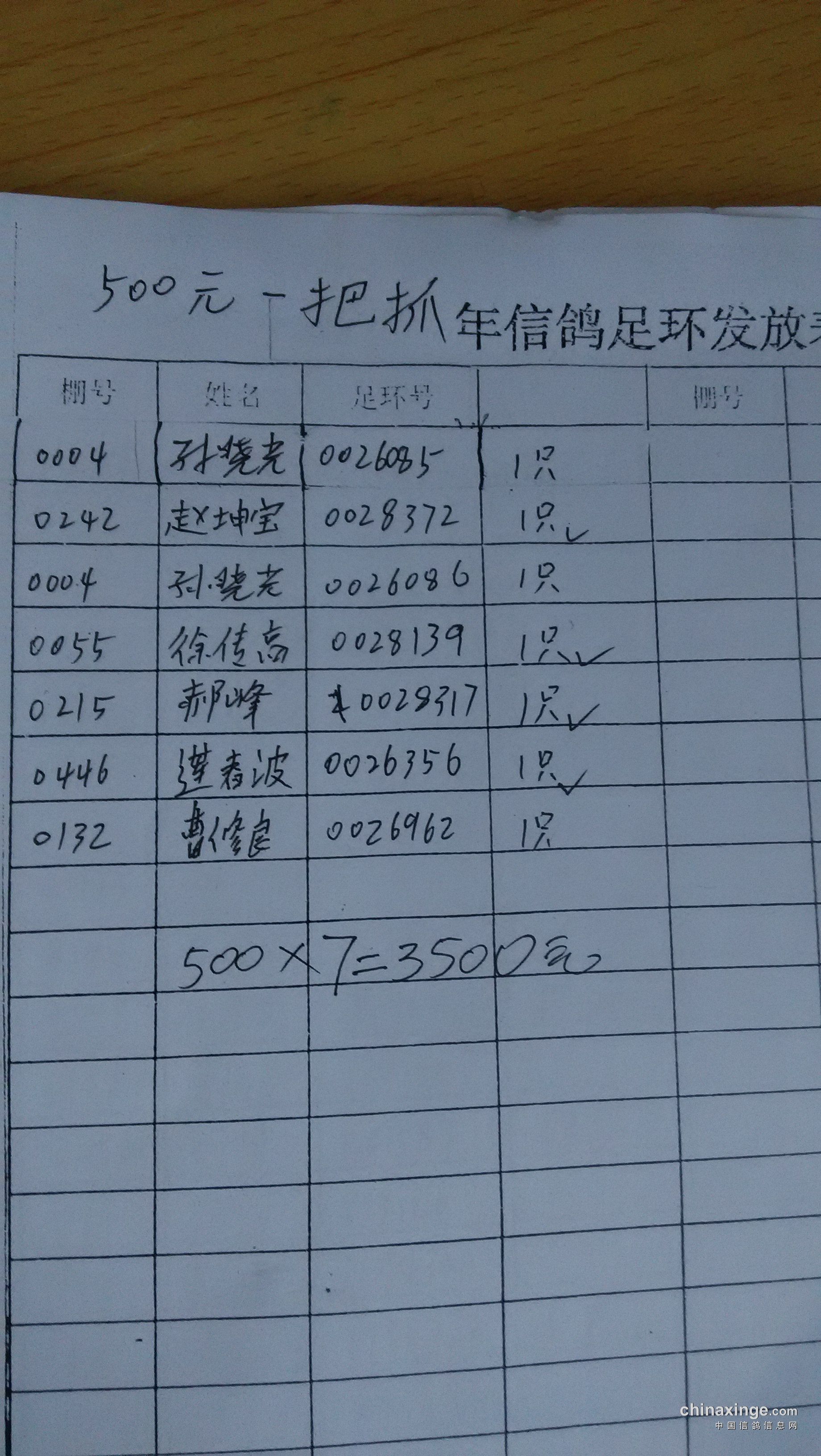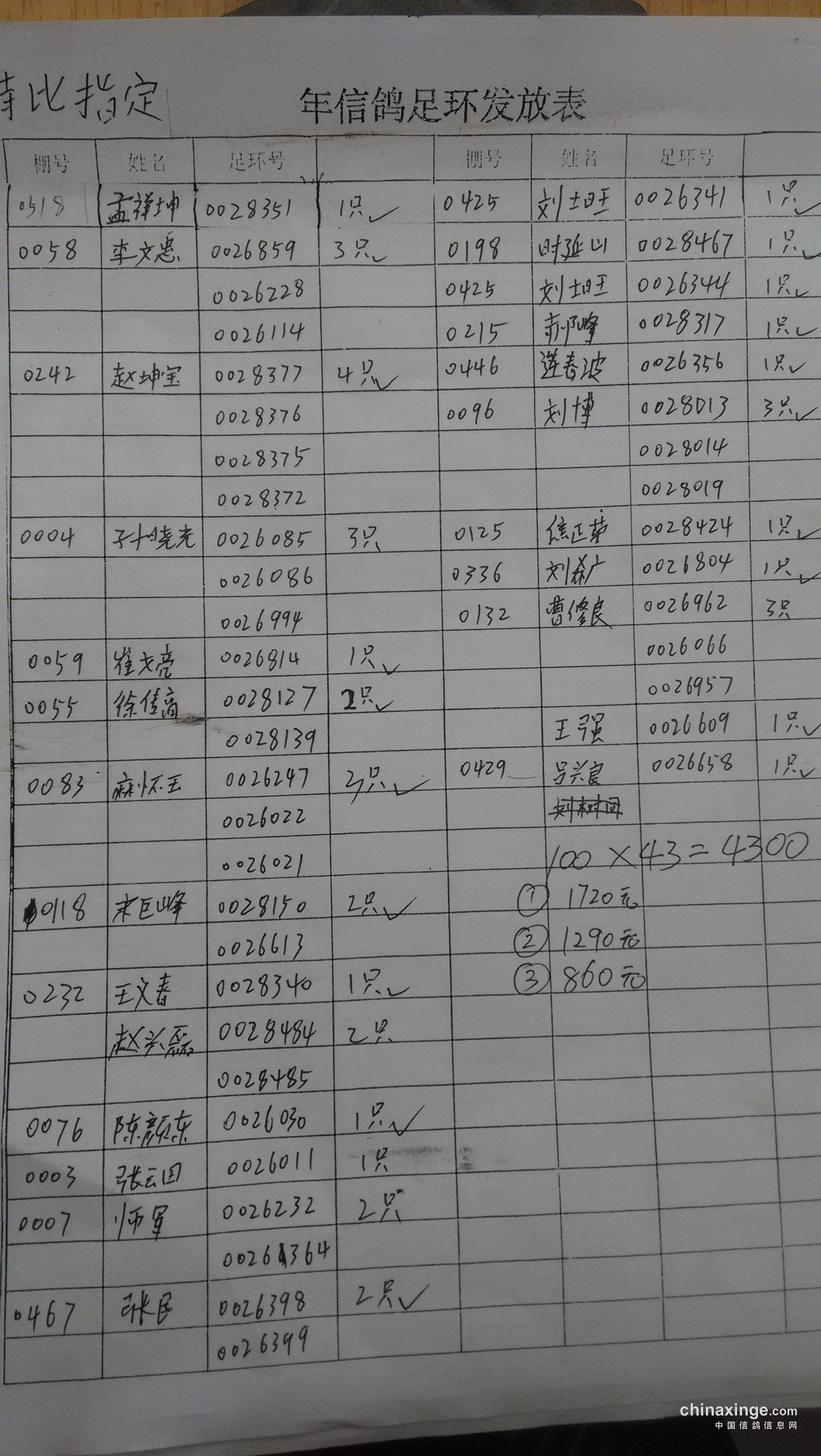 章丘区信鸽协会2023秋特比环双关综合成绩