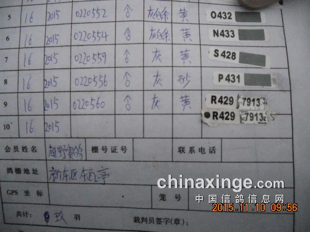 2015秋540公里花园站普赛冠军、特比冠军王海军验鸽图片