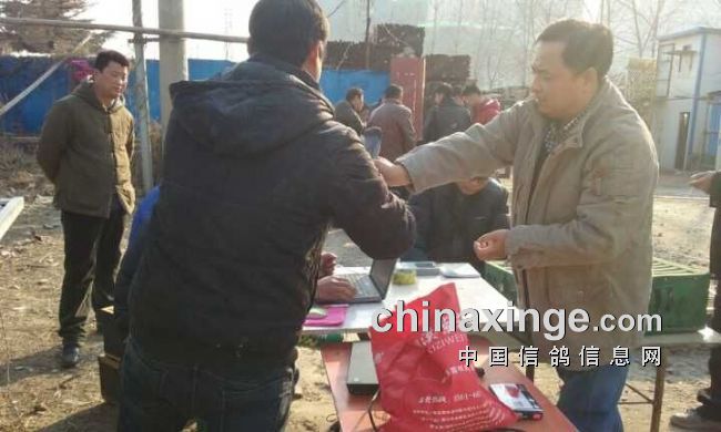 图7:朝放暮归,成绩出炉;部分获奖鸽友已前来领取获奖奖品----老公鸡