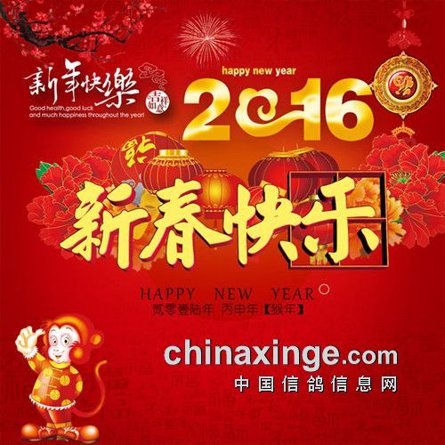 阜宁县信鸽协会主席王加祥携鸽会全体工作人员恭祝广大鸽友:新年快乐,心想事成,阖家欢乐,万事如意,猴年财源滚滚,步步高升,鸽运亨通!