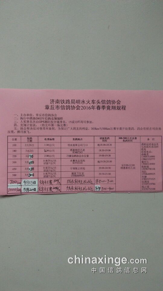 章丘市信鸽协会通知