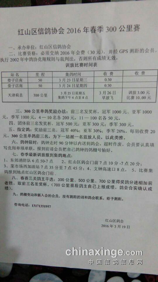 2017年秋季红山区信鸽协会530公里大奖赛规程