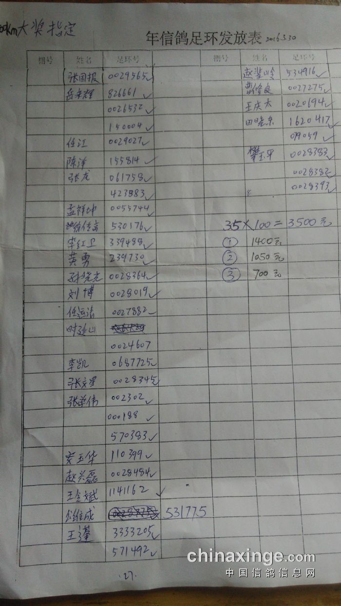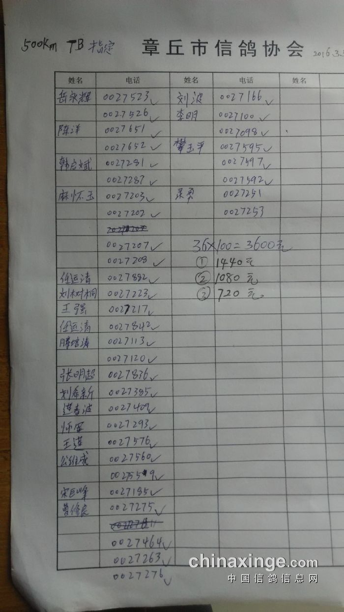 章丘区信鸽协会2023秋特比环双关综合成绩
