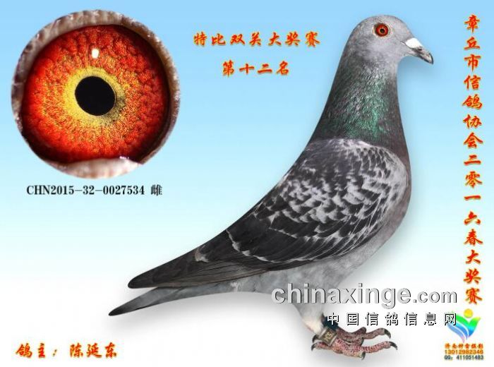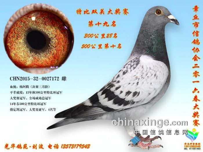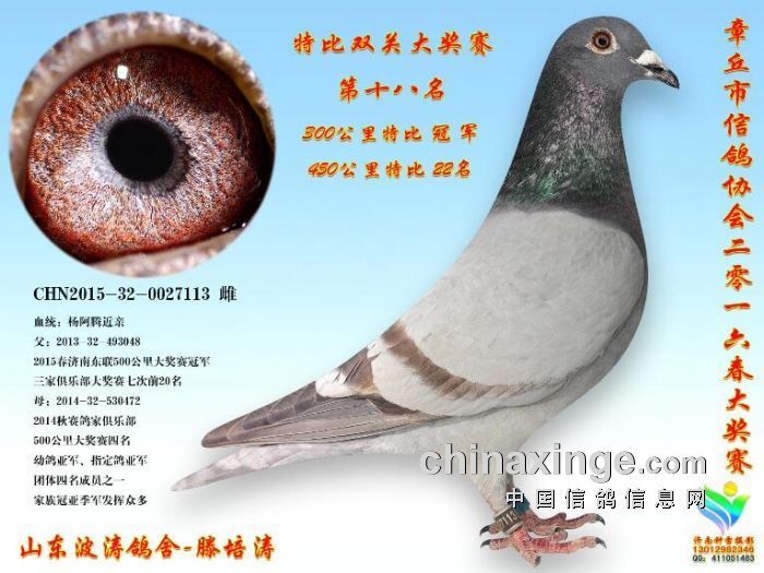 章丘市信鸽协会2016春季双关特比环获奖鸽图片2