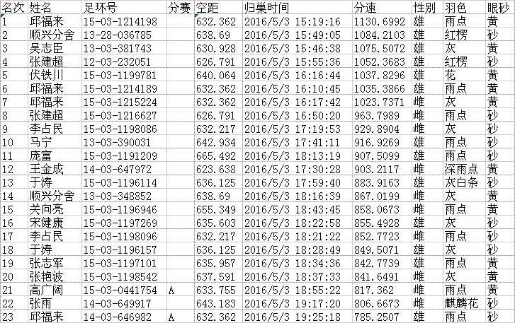 霸州市信鸽协会2025年春季500公里级国家赛成绩