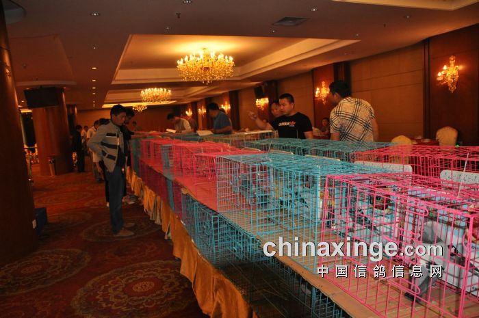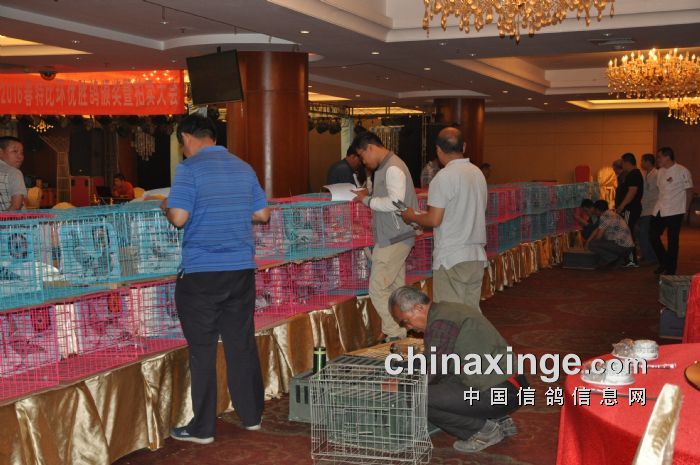 工作人员进行鸽子登记确认