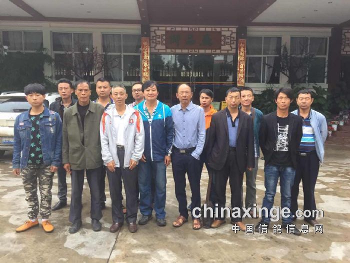 不辞辛苦,晚间仍然与鸽友进行交流并合影留念