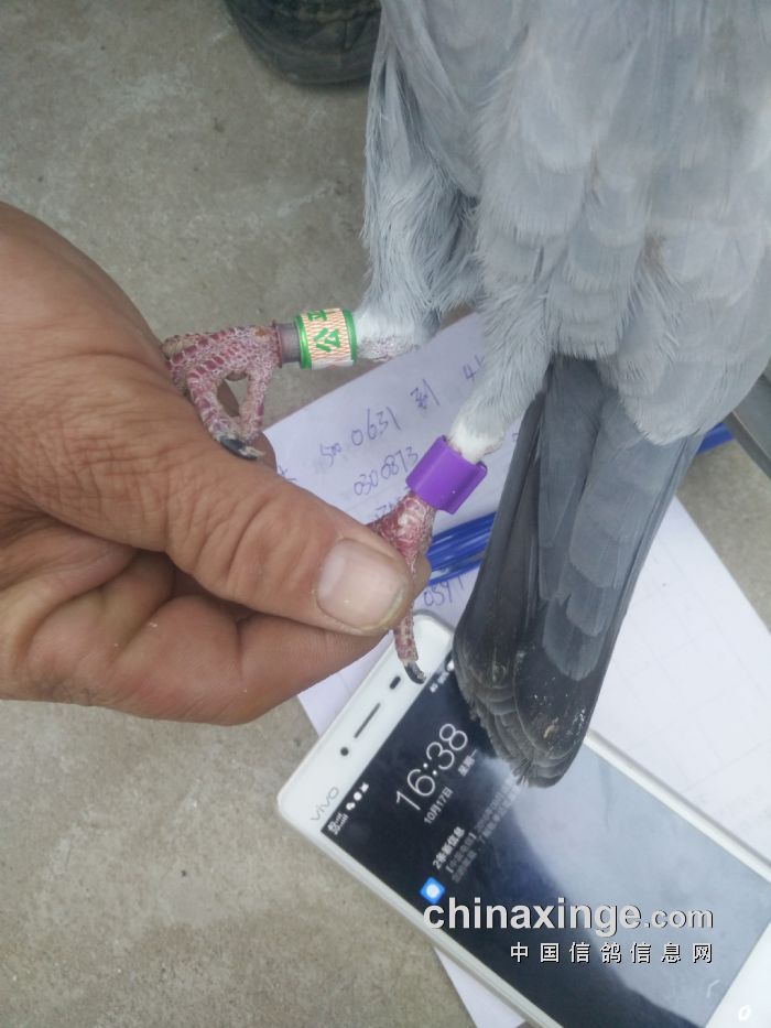 南和鸽会500公里比赛,龙祥鸽舍+康学亮,一羽500元特比环于17号下午,16点15分归巢,归巢后电子环无法扫描,打电话给鸽会,于16点38分持鸽到鸽会报道,骑缝章吻合,易损贴完好,验鸽后环号为0300647,雄,砂,灰。根据南和鸽会裁判组和监赛鸽友张二震,以及邢台市鸽会左秘书长共同商议,根据:2015年中国竞翔规则27页,第四条:使用信鸽比赛计时器报到出现下列情况时,按持鸽报到计(1)赛鸽归巢时,密码环,电子环损坏或丢失;按持鸽报到时间录入,本羽成绩有效