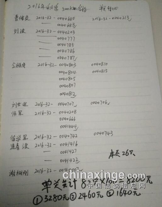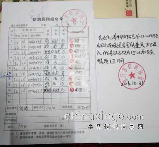 章丘区信鸽协会2023秋300公里大奖赛成绩