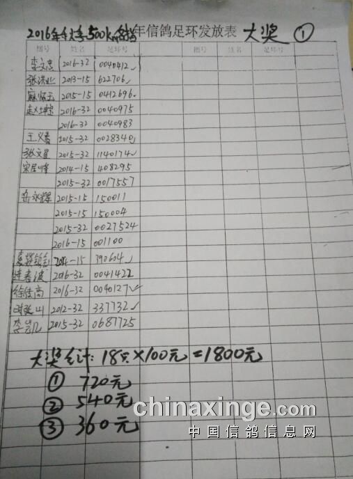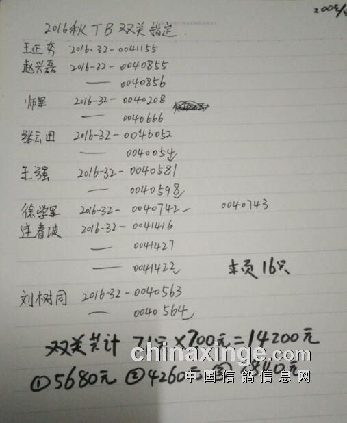 章丘区信鸽协会2023秋特比环双关综合成绩