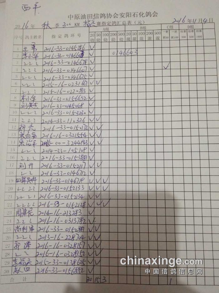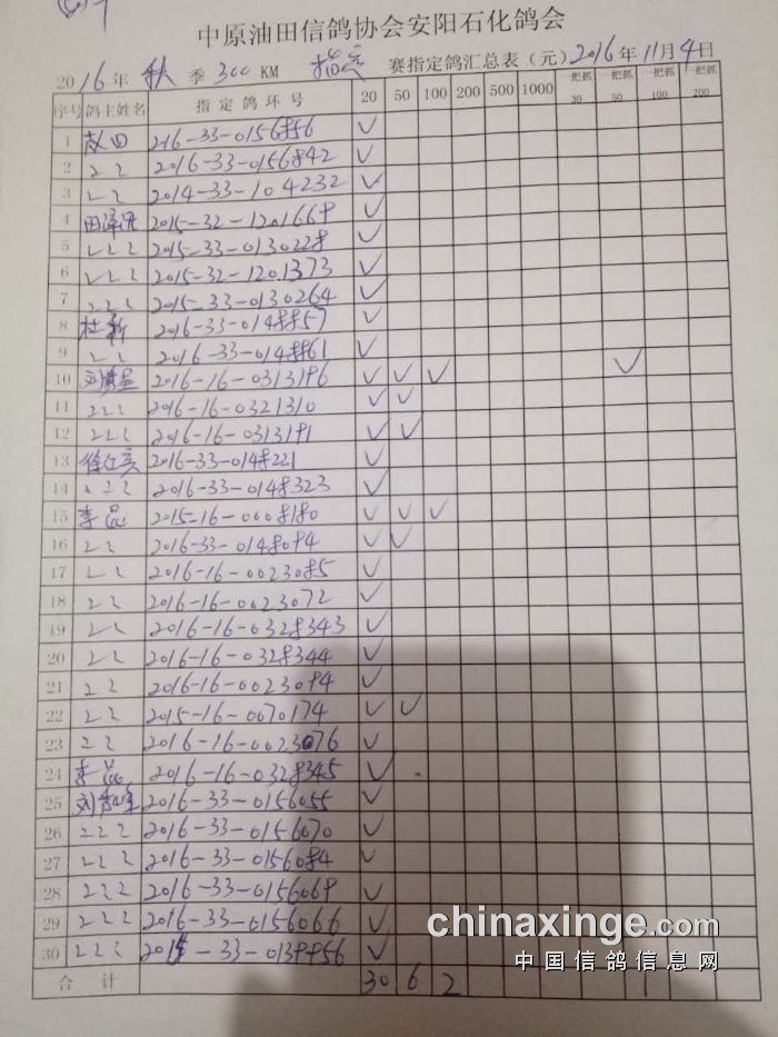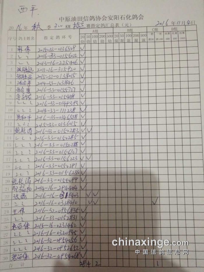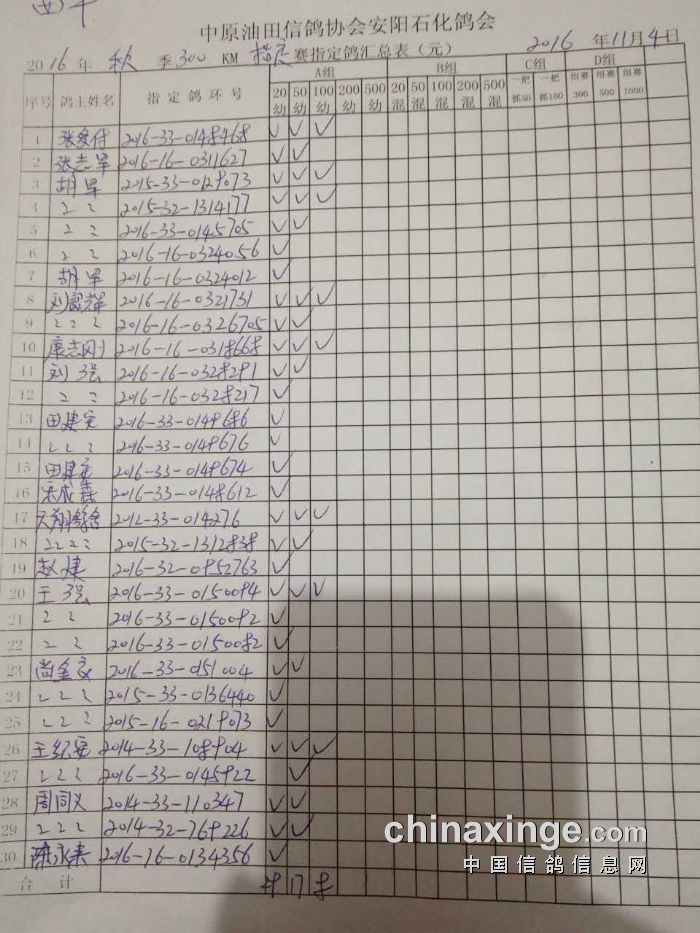 2021年秋500公里大悟大奖赛第二关成、幼鸽指定成绩