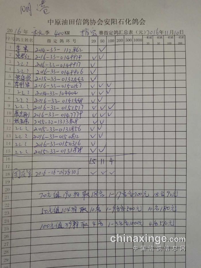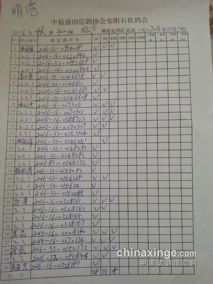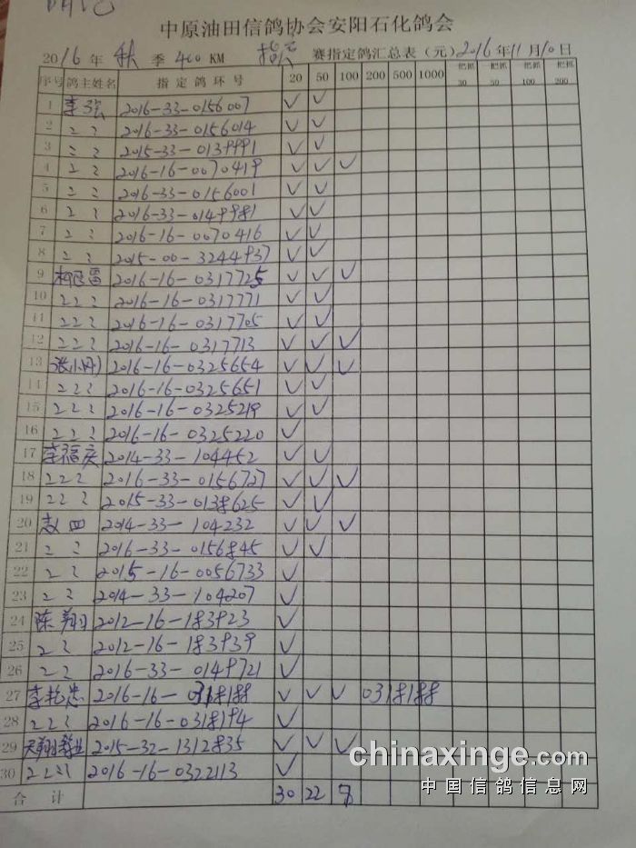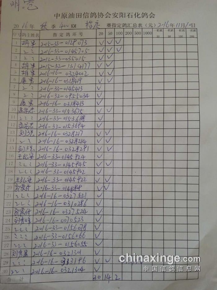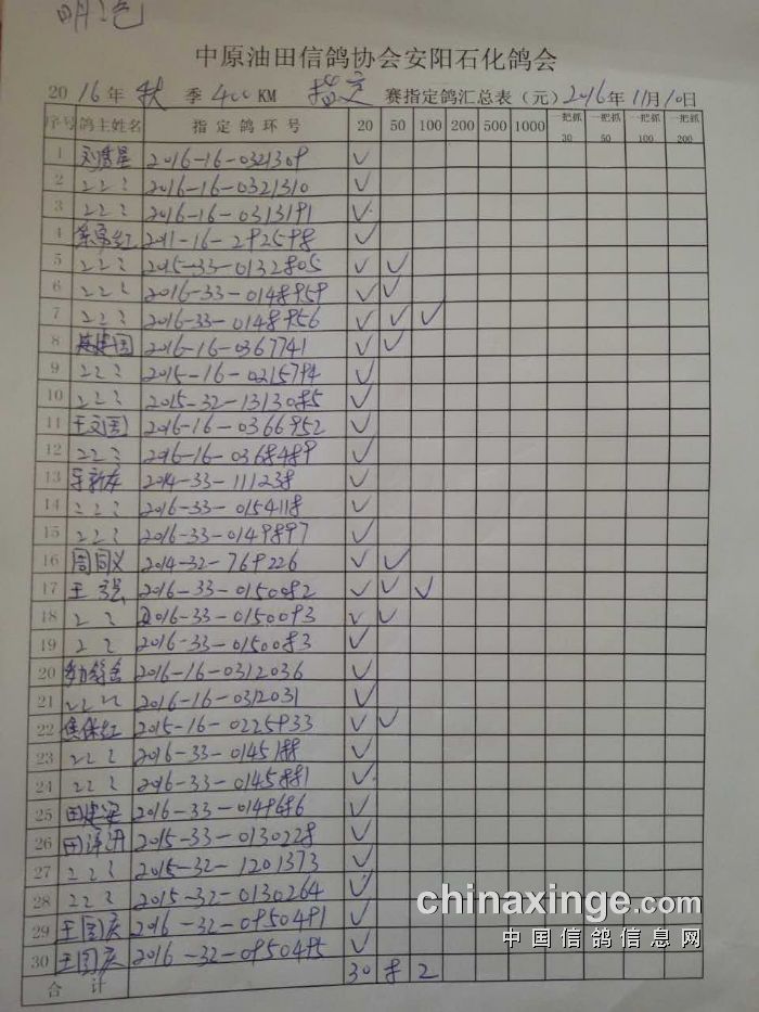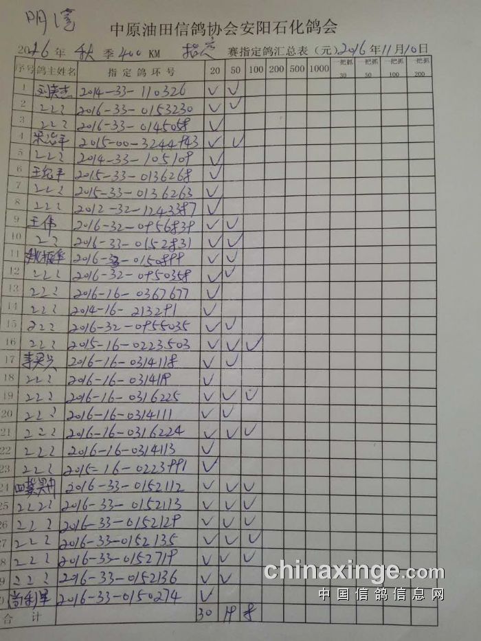 2021年秋500公里大悟大奖赛第二关成、幼鸽指定成绩