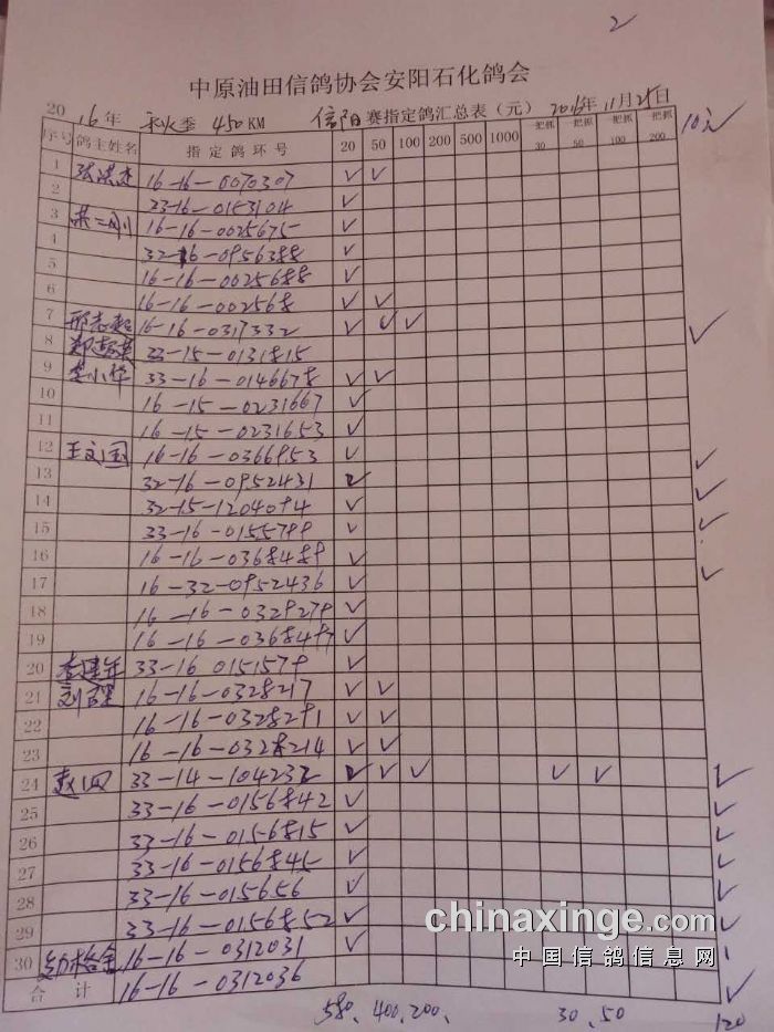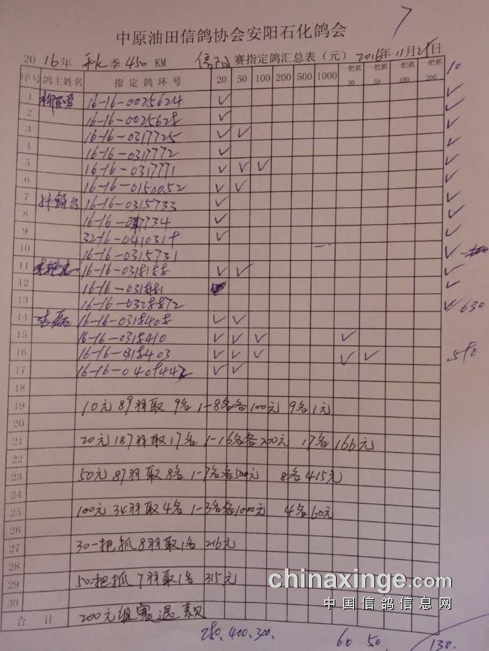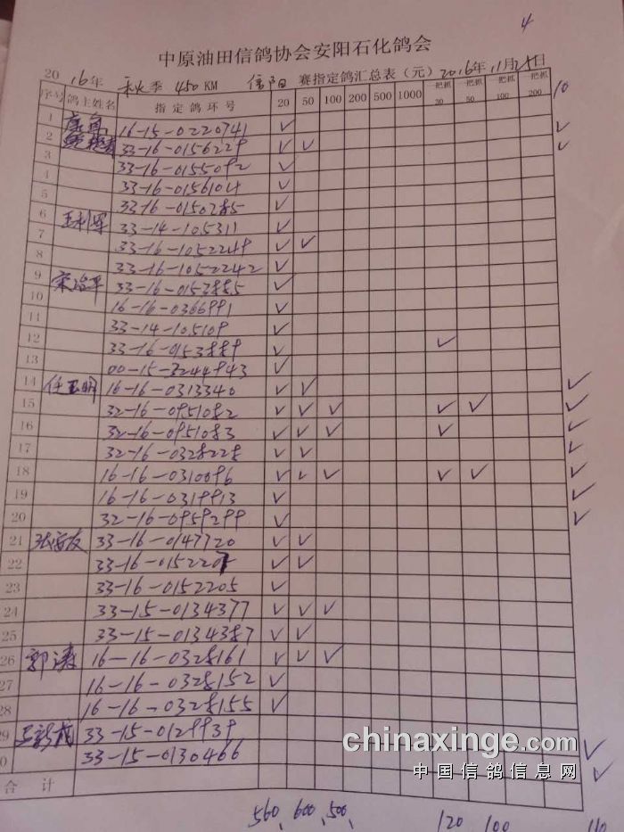 2021年秋500公里大悟大奖赛第二关成、幼鸽指定成绩