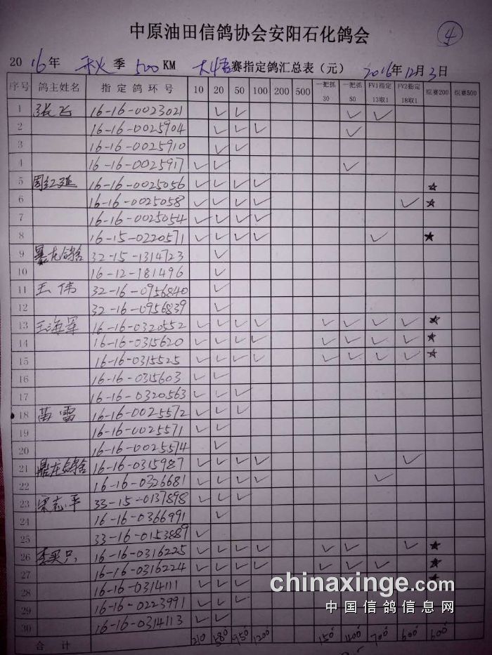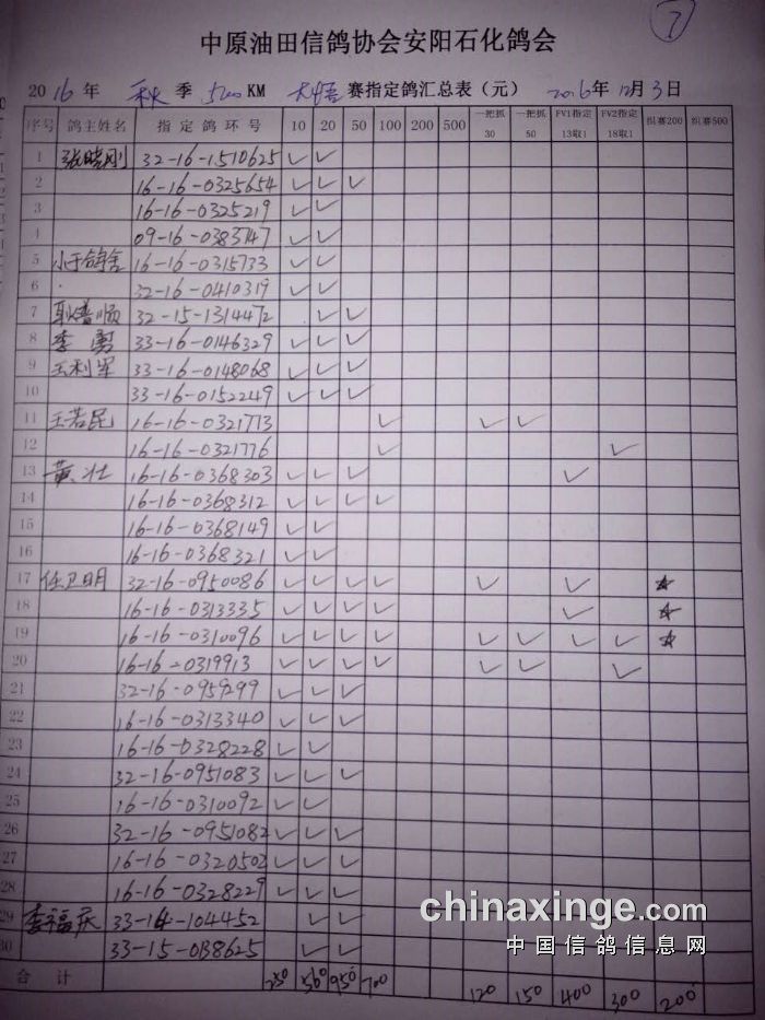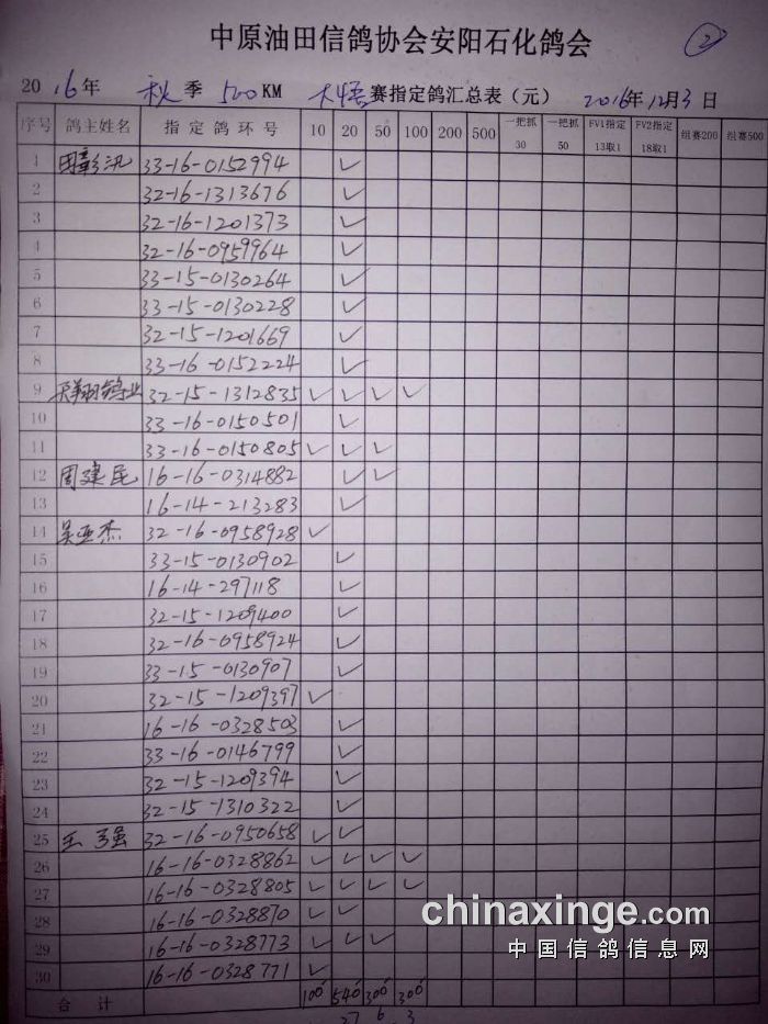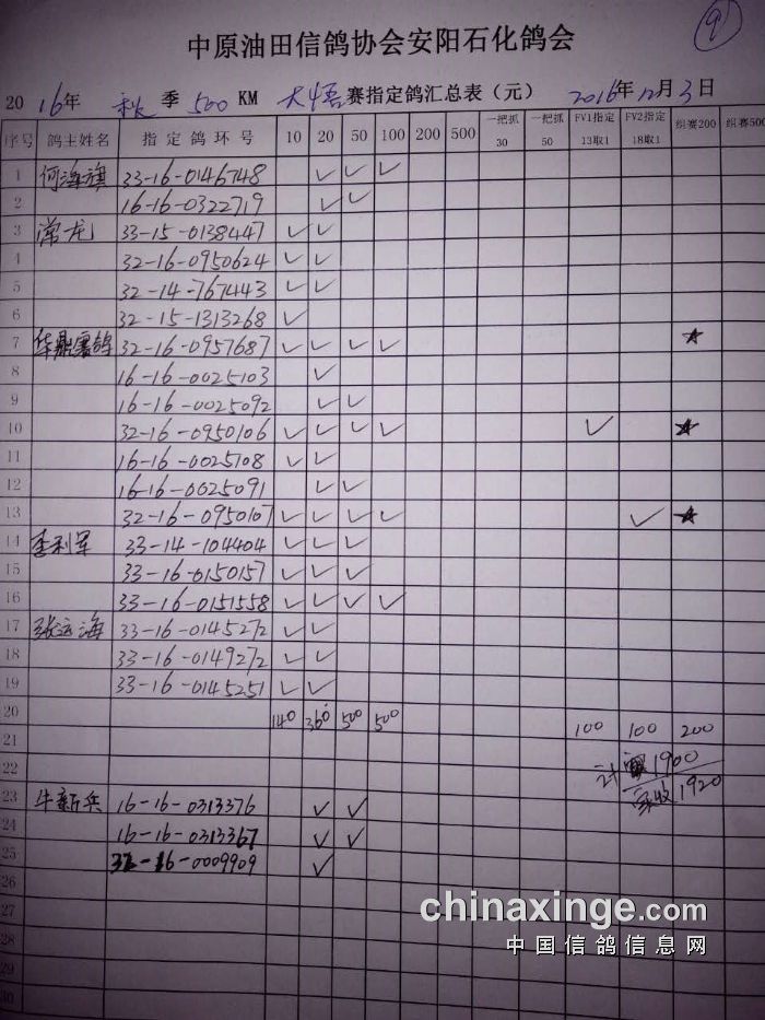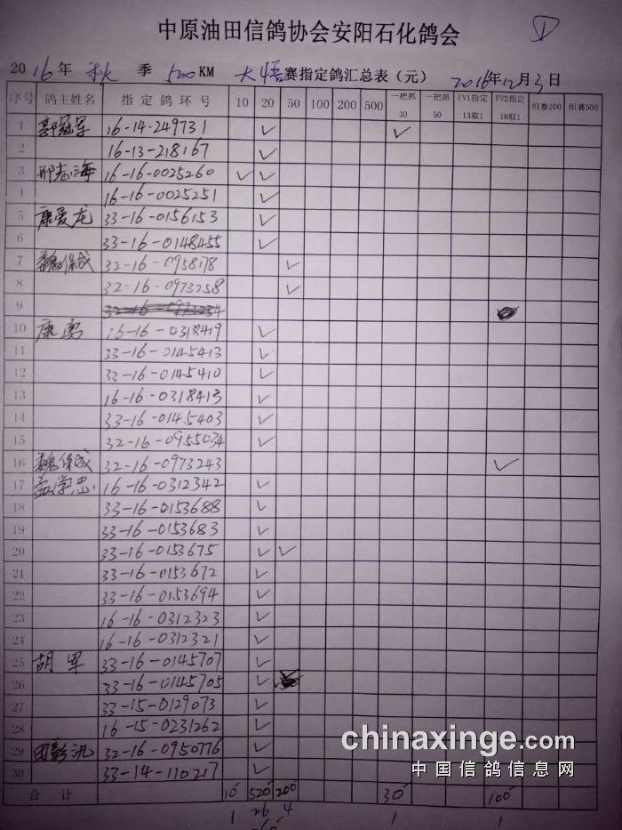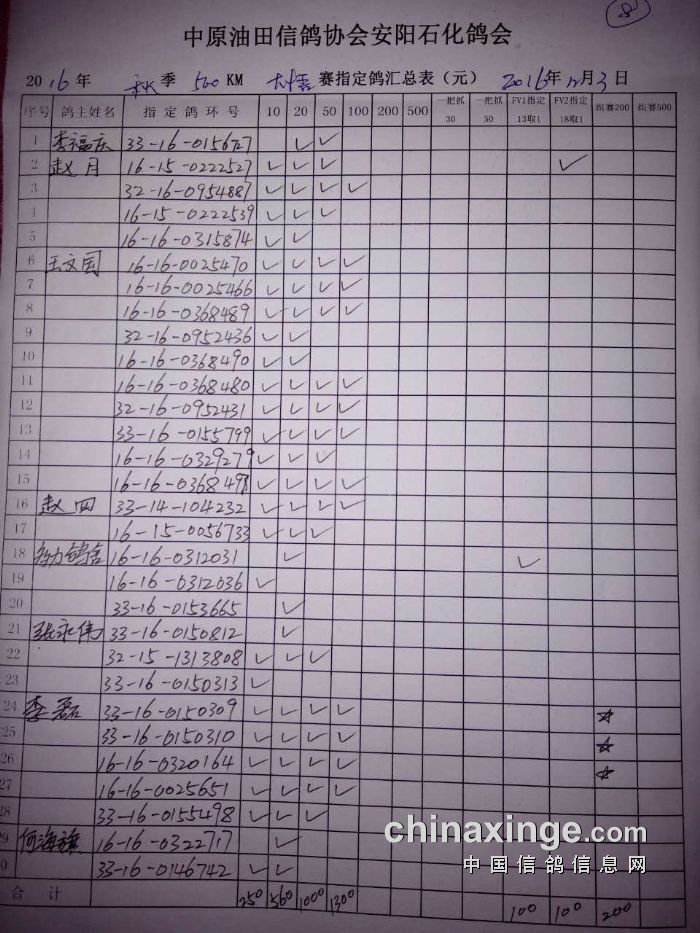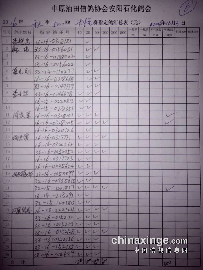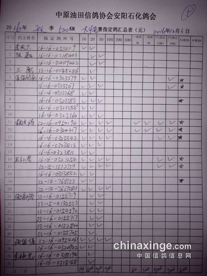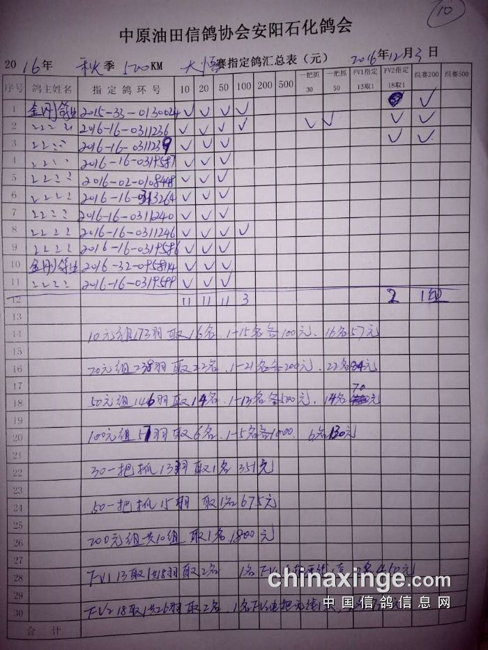 2021年秋500公里大悟大奖赛第二关成、幼鸽指定成绩