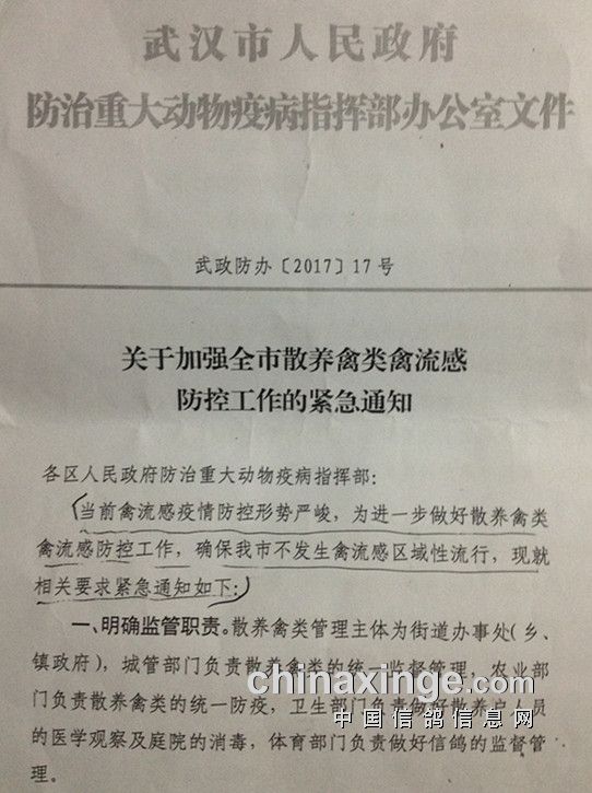 加强信鸽管理。在市政府解除III级应急响应前,所有信鸽一律舍饲,不得放飞,并做好防疫、消毒工作。病死鸽由所在区动物卫生监督部门回收统一无害化处理。