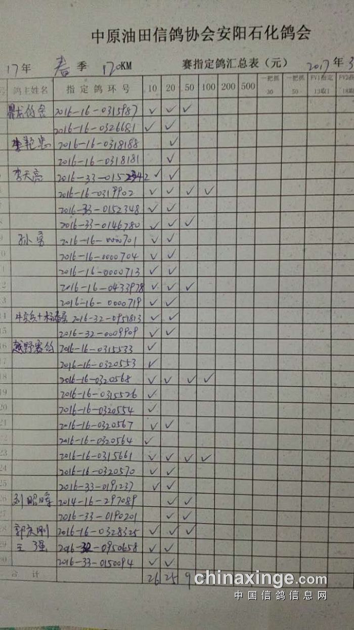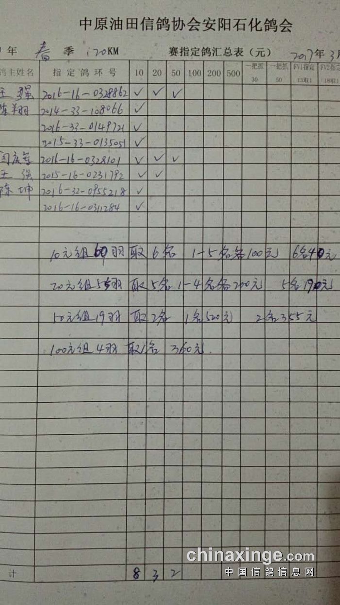 2021年秋500公里大悟大奖赛第二关成、幼鸽指定成绩