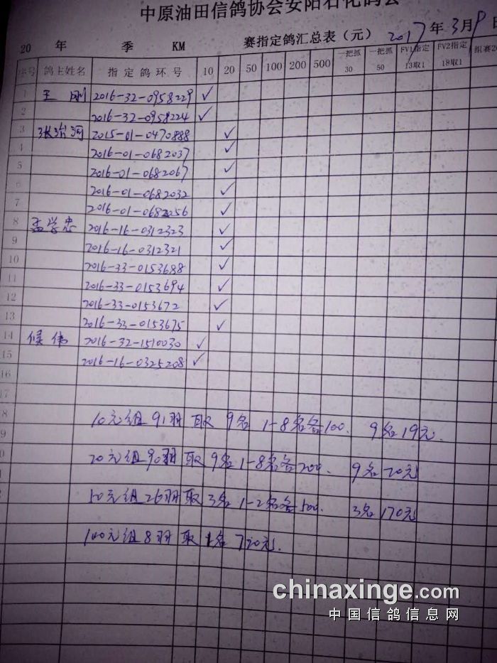 2021年秋500公里大悟大奖赛第二关成、幼鸽指定成绩