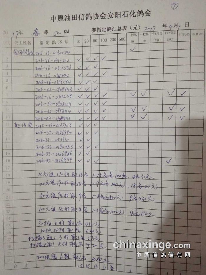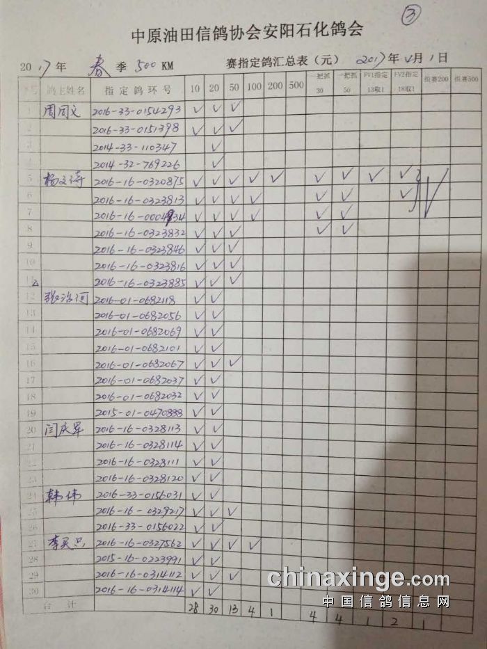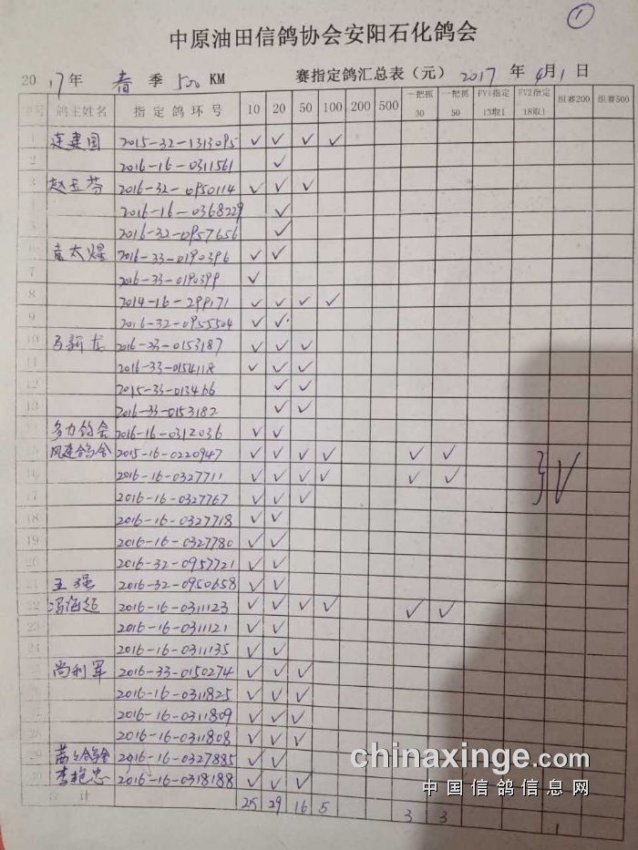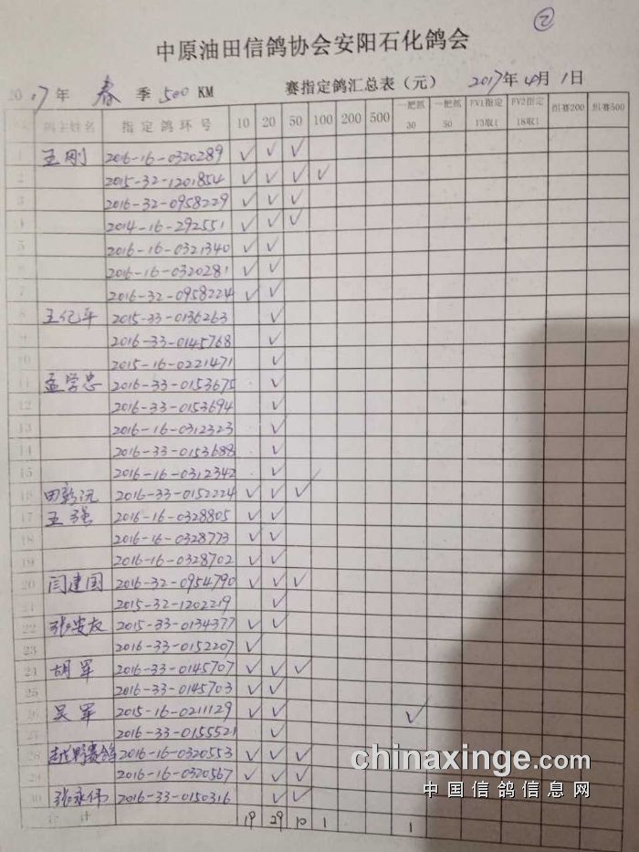 2021年秋500公里大悟大奖赛第二关成、幼鸽指定成绩