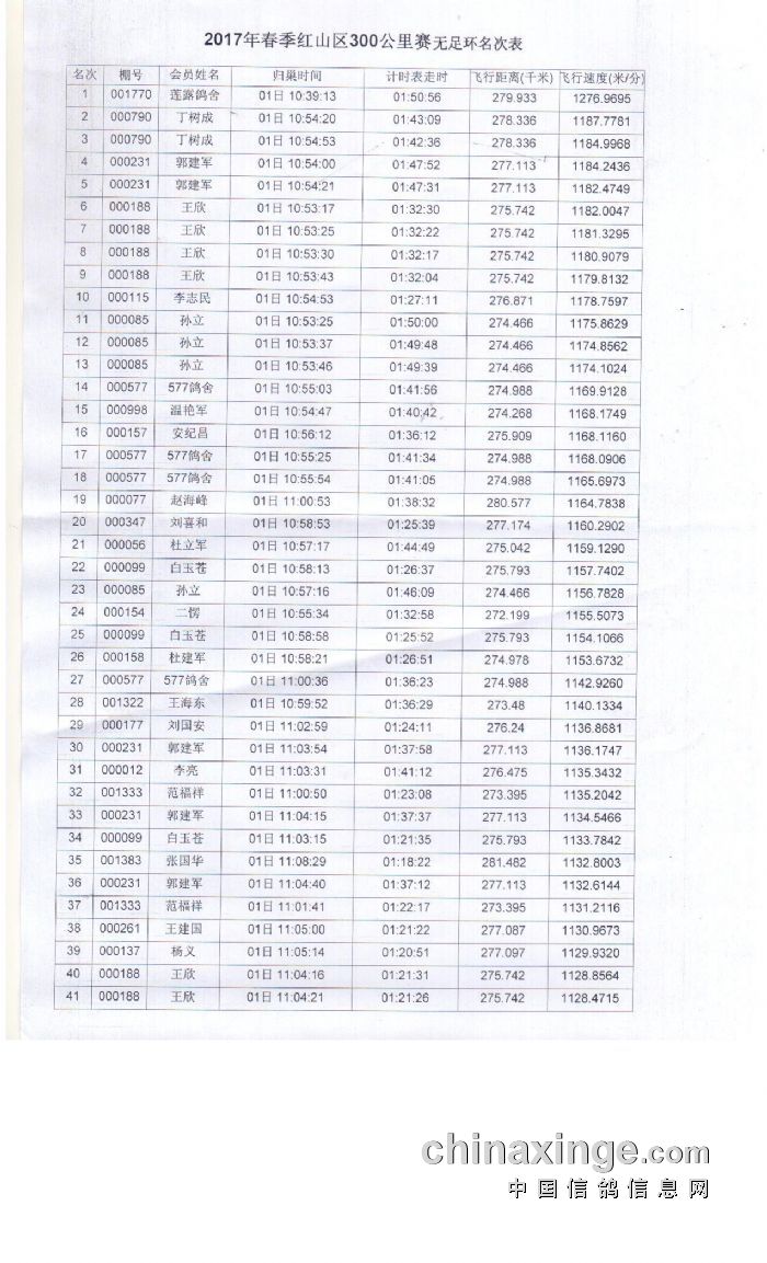 2017年秋季红山区信鸽协会530公里大奖赛规程