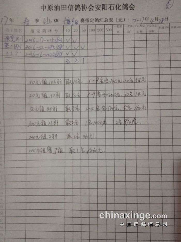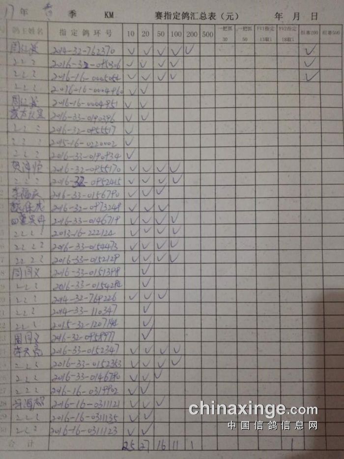 2021年秋500公里大悟大奖赛第二关成、幼鸽指定成绩