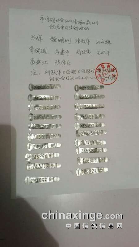 特比环比赛前二十名会员姓名及信鸽暗记