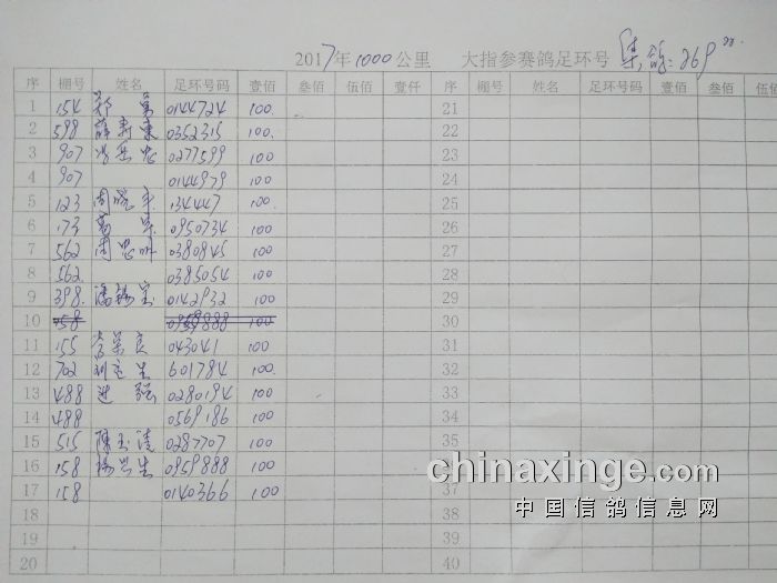 1000公里比赛,本会名次取50名,见鸽后报到5天结束比赛,