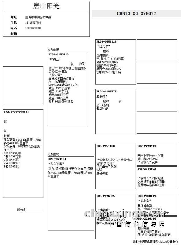 感谢唐山阳光强总(王秀强先生)友情赞助安阳石化信鸽协会