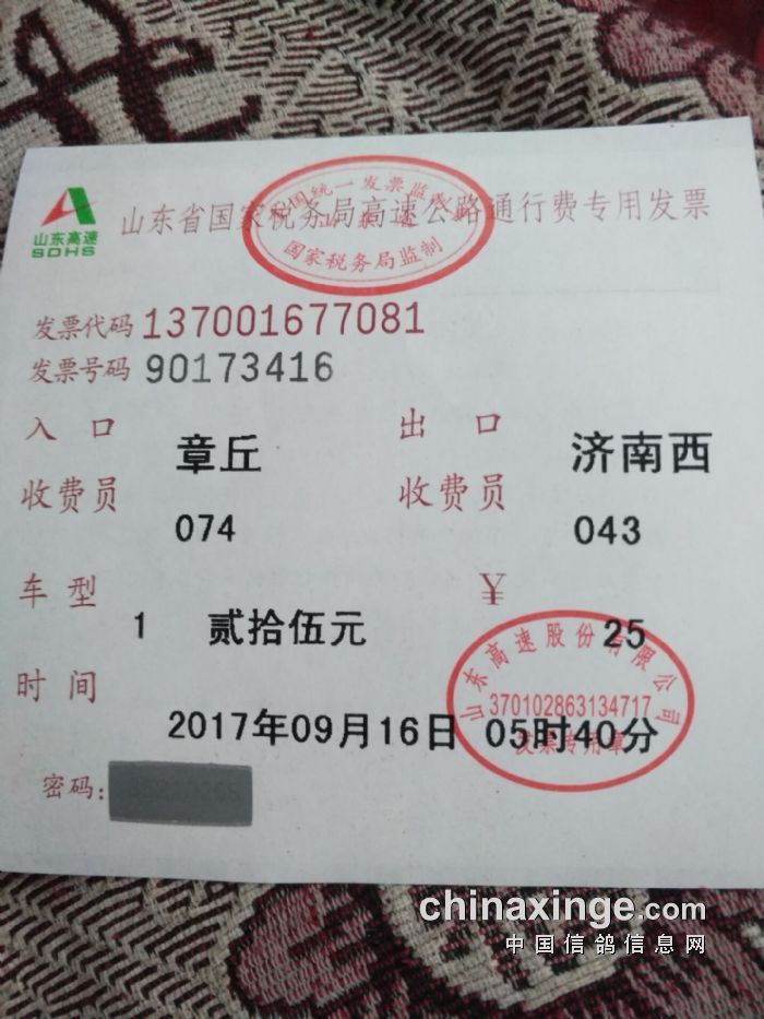 章丘区信鸽协会2023秋300公里大奖赛成绩