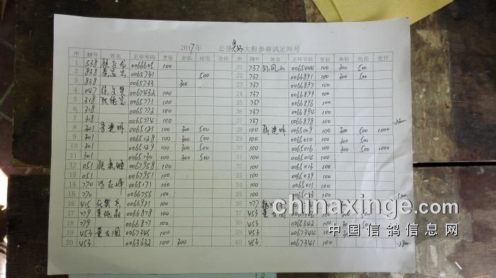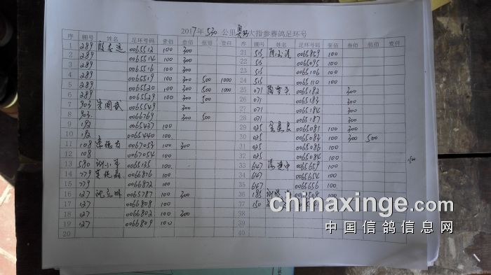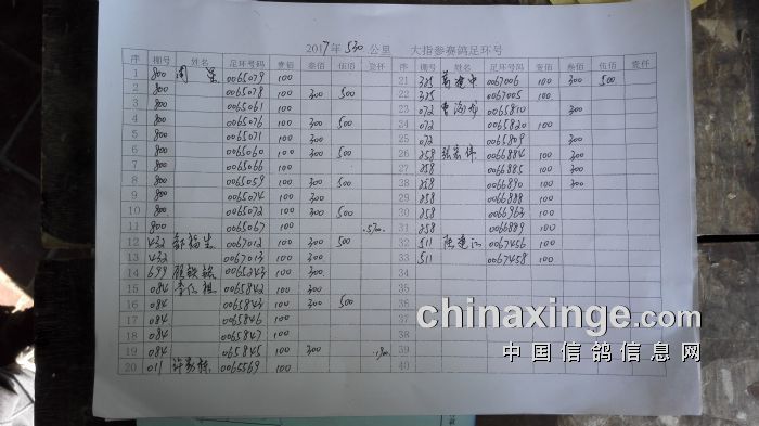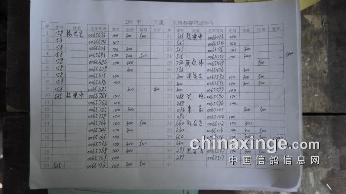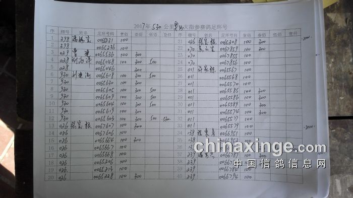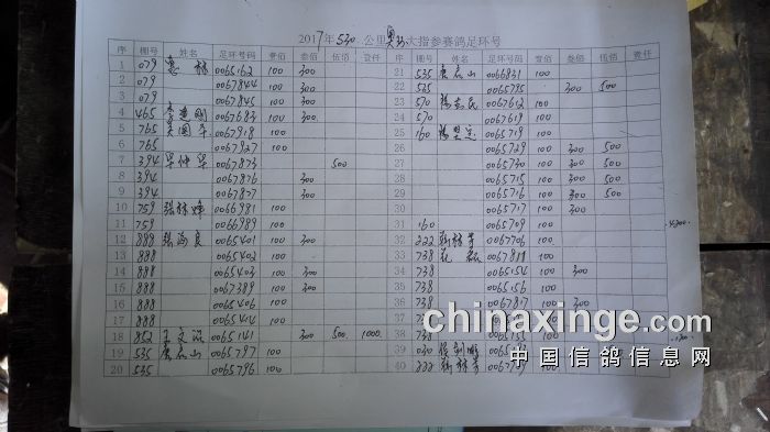 集鸽920羽,其中30元指定414羽